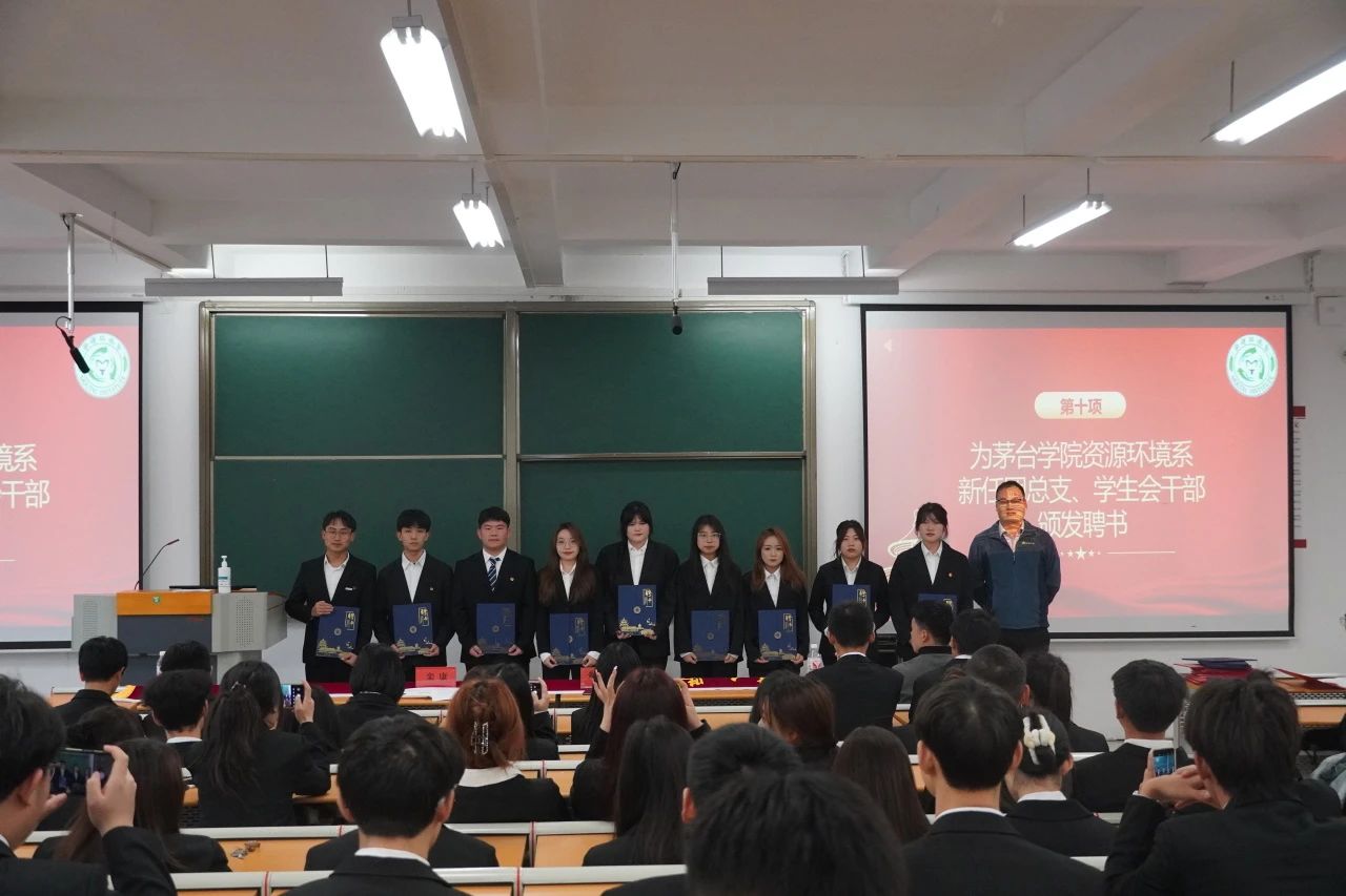 栾康老师为Beat365中文官方网站资源环境系第六届团总支干部颁发聘书。