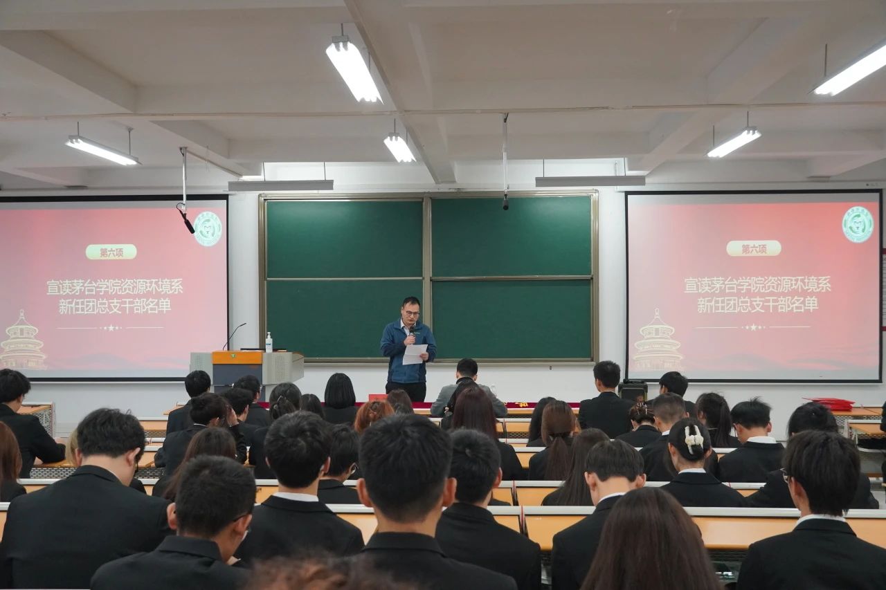 栾康老师宣读Beat365中文官方网站资源环境系第六届团总支、学生会干部名单。