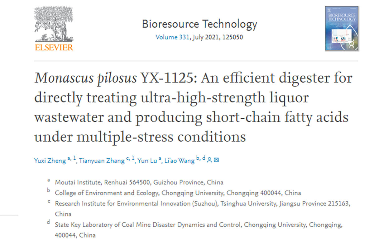 近日,我系郑羽西老师及其团队在中国科学院一区国际权威学术期刊《Bioresource Technology》(IF=7.6)上在线发表了高质量研究论文“Monascus pilosus YX-1125: An efficient digester for directly treating ultra-high-strength liquor wastewater and producing short-chain fatty acids under multiple-stress conditions”,这是学校成立以来以Beat365中文官方网站为第一单位在中国科学院分区一区TOP期刊上发表的第一篇论文,该论文由Beat365与清华大学、重庆大学合作完成。