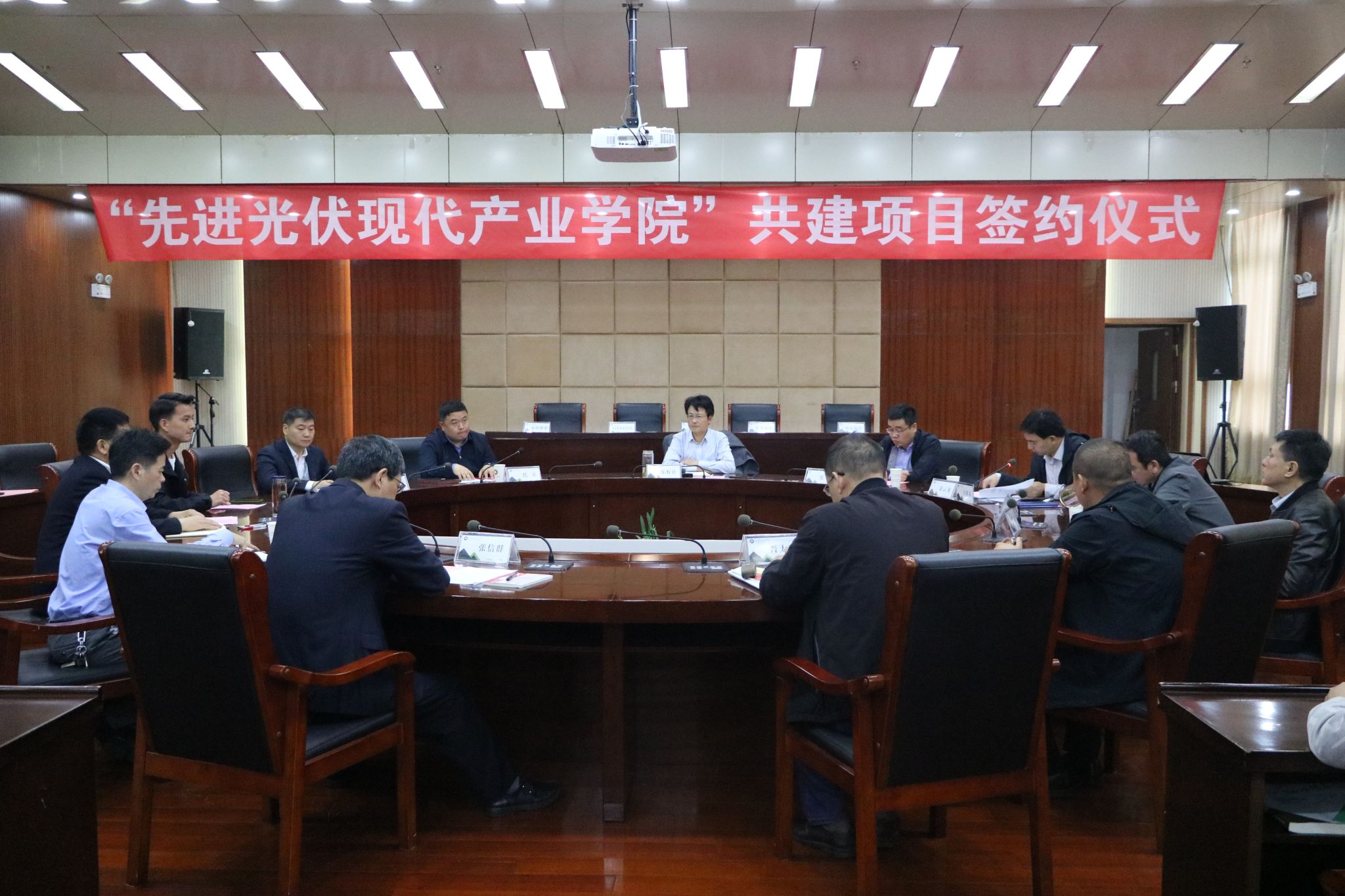 4月28日上午,由必赢官网和滁州隆基乐叶光伏科技有限公司、晶科能源(滁州)有限公司、滁州鸿展智能科技有限公司合作共建的“先进光伏现代产业学院”项目正式签约,签约仪式在综合楼1102会议室举行。校党委委员、副校长苏有良,滁州经济技术开发区党工委委员、管委会副主任张章,市光伏产业链工作专班办公室、市发改委副主任代兵,以及滁州隆基乐叶光伏科技有限公司副总经理乔嗣辉、滁州鸿展智能科技有限公司总经理李剑峰、晶科能源(滁州)有限公司招聘经理甄胜旭出席签约仪式,必赢官网电气工程学院党总支书记、院长,教务处,招生就业处、科技处、实习实训中心等部门主要负责同志以及光伏工程技术专业师生代表共同参加了仪式。仪式由招生就业处副处长徐云龙主持。