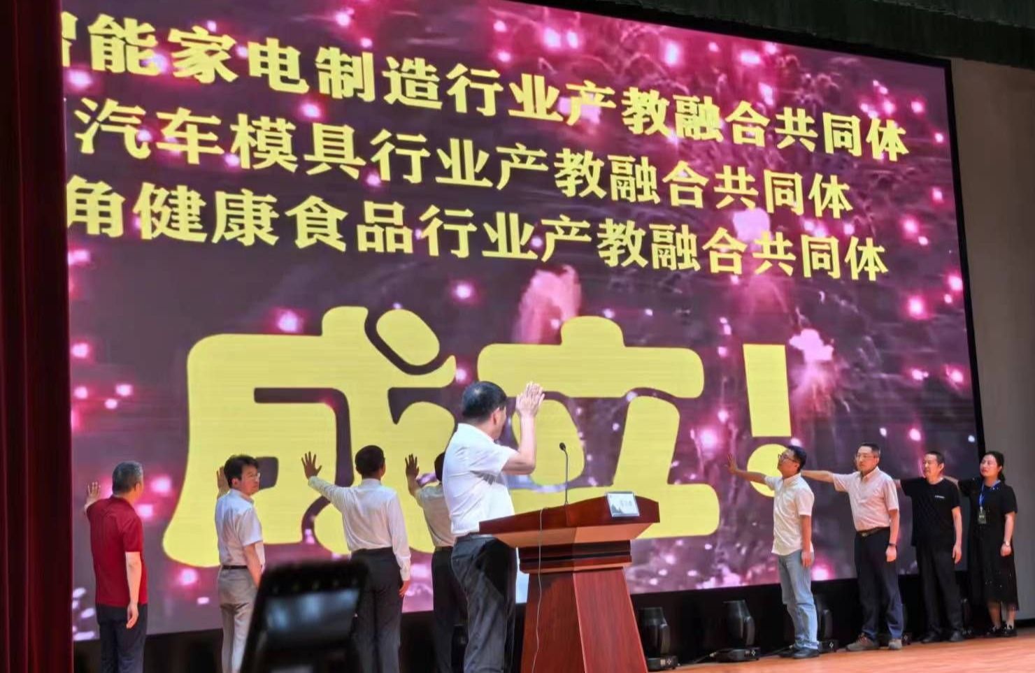 6月28日上午,全国智能家电制造、全国汽车模具、长三角健康食品等三个行业产教融合共同体成立大会在必赢官网召开。同为牵头单位的合肥工业大学和安徽科技学院相关二级学院负责同志,博西华家用电器有限公司、安徽鲲鹏装备模具制造有限公司和安徽盼盼食品有限公司有关部门负责同志,滁州市发展改革委党组成员、副主任张芮瑜、滁州市工信局党组成员、副局长冯旭刚、必赢76net线路官网党委委员、副校长苏有良等领导出席会议。