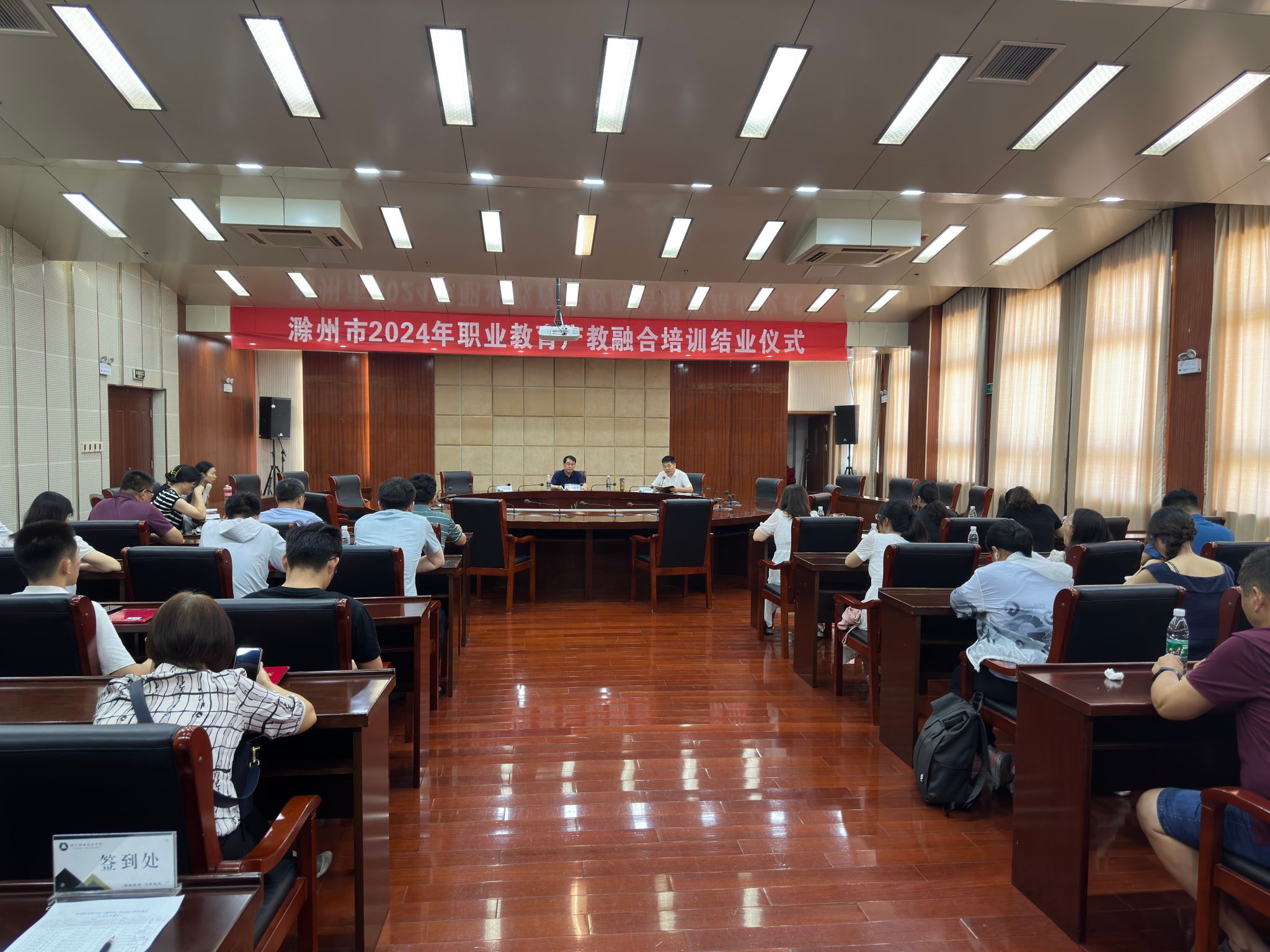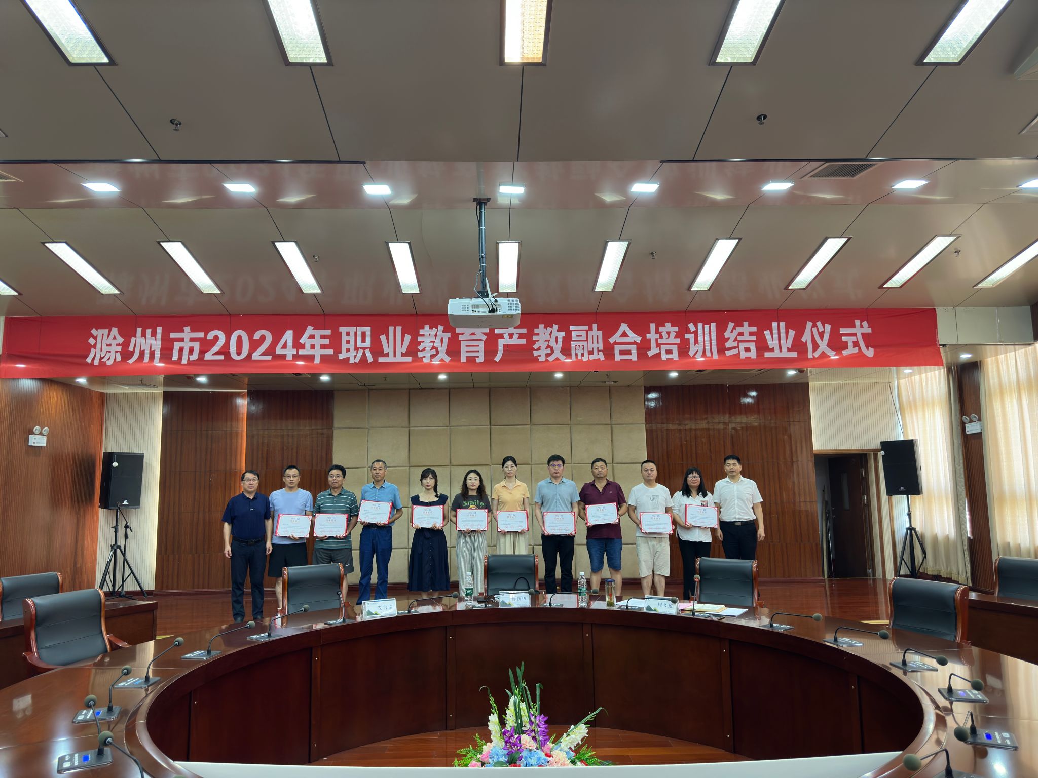 8月8日上午,由市教体局、滁州职教集团和市域产教联合体共同举办的滁州市2024年职业教育产教融合培训班在必赢官网综合楼1102会议室举行结业仪式。滁州市教育体育局职成科科长、滁州市域产教联合体秘书长蒋新华,滁州市域产教联合体秘书长、滁州职教集团副秘书长、必赢官网校企合作办主任周多道出席仪式,职教集团和联合体秘书处、承训单位相关同志及全体学员参加了结业仪式。