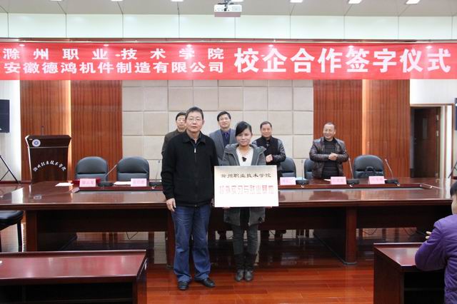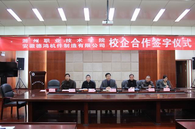 11月27日下午,学院在综合楼报告厅举行校企合作冠名班签约仪式。安徽德鸿机件制造有限公司财务总监周长富、办公室主任江兴堂、人力资源部经理汪令秀,学院院长助理、招生就业处处长穆松、教务处处长张延义、汽车工程系张信群以及冠名班(12模具班)同学出席了签约仪式。签约仪式由张信群主持。