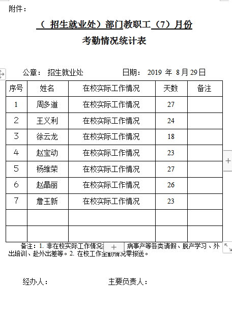 根据学校要求,现将招就处暑期7-8月份考勤情况予以公示,时间为三个工作日,如有意见请致电0550-3854666反映。