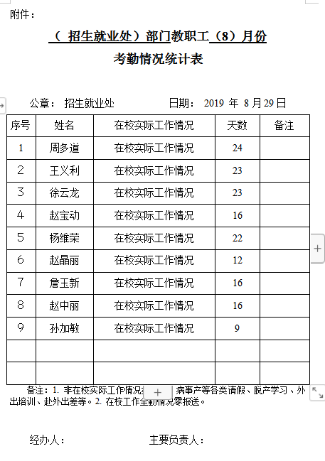 招就处2019年暑期考勤情况公示