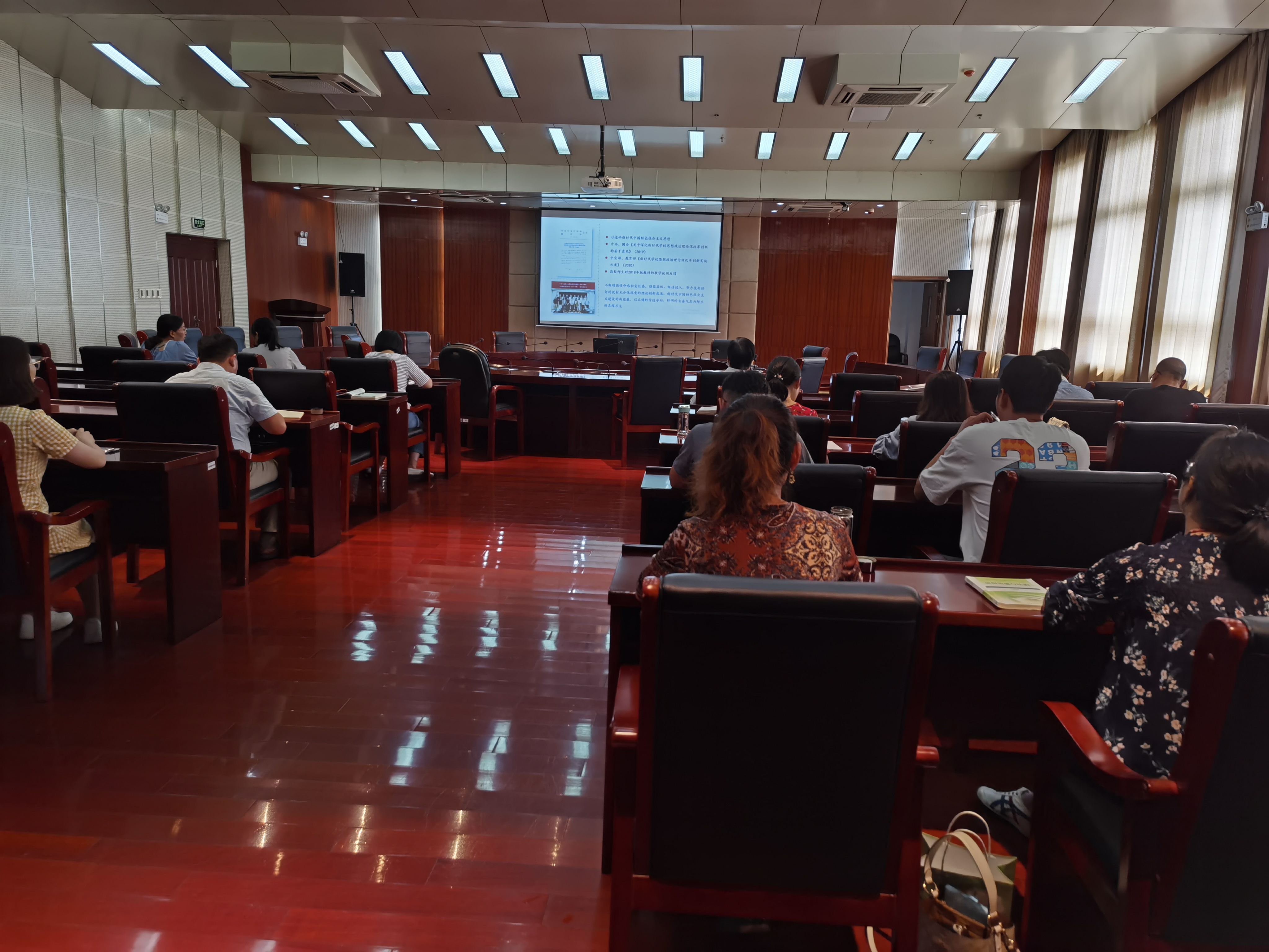 新教材培训是师资队伍建设和培养的重要环节,是提升思政课教师教学水平的重要途径,通过培训促进教师尽快对新教材内容的理解与掌握,有利于思政课教师在新学期教学中将教学内容和教学方法有机结合,更好地改进教学方式,提升课堂教学效果。本次培训达到预期成效,马院全体思政课教师借助培训进一步掌握新教材、体会新思想、形成新认识、凝练新教法,为下一步将教材体系转化为教学体系,将教学体系转化为大学生信仰体系打下了坚实基础。