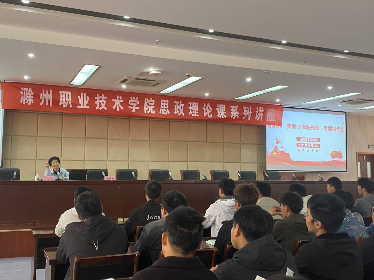 为深入贯彻落实《中共安徽省委教育工委关于在全省高校组织开展新时代先进人物进校园推进“英模·大师进思政课堂”活动的通知》精神,10月21日,马克思主义学院在综合楼五楼报告厅举办题为“听老兵讲援朝故事,忆党史奋进新征程”的“英模·大师进校园”专题报告会,专题报告由抗美援朝老兵裴琳蓉主讲。报告会由“概论”课教研室主任张家莉副教授主持,马克思主义学院全体师生以及来自建工学院和电气学院的200余名大学生聆听报告。