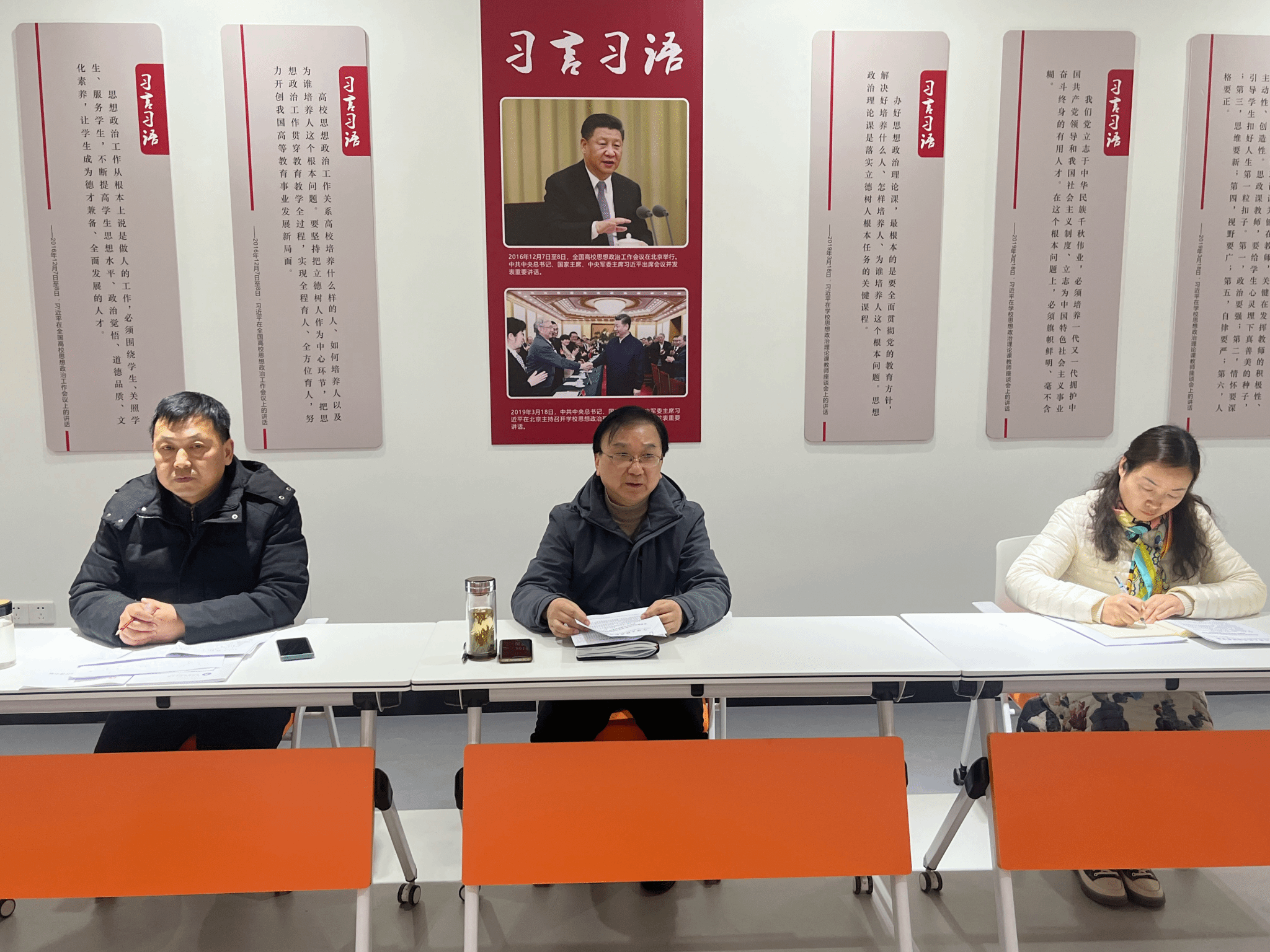 为深入学习贯彻习近平新时代中国特色社会主义思想和党的二十大精神,高标准推动必赢官网思政课教师师德师风建设,2024年1月3日,马克思主义学院在“大思政课”数字研学中心组织全体思政课教师学习《新时代高校思想政治理论课教师行为规范和准则》。校党委委员、宣传统战部部长王冬参加会议并作指导讲话,会议由马克思主义学院党总支书记、院长孔金主持。