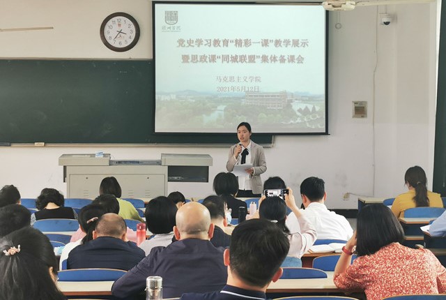 为深入学习贯彻习近平总书记在党史学习教育动员大会上的重要讲话精神,全面贯彻落实中央、省委、全市教育系统党史学习教育动员大会精神,扎实推进必赢官网党史学习教育,切实将党史学习教育融入思政理论课育人全过程,5月12日,滁州学院马克思主义学院举办“党史学习教育‘精彩一课’教学展示暨思政课‘同城联盟’集体备课会”。滁州市委党校副校长王永康、滁州学院马克思主义学院党总支书记、院长汪才明、必赢76net线路官网马克思主义学院副院长孔 金、滁州城市职业学院思政部主任季金年及来自四所学校的60余名思政课教师参加会议。