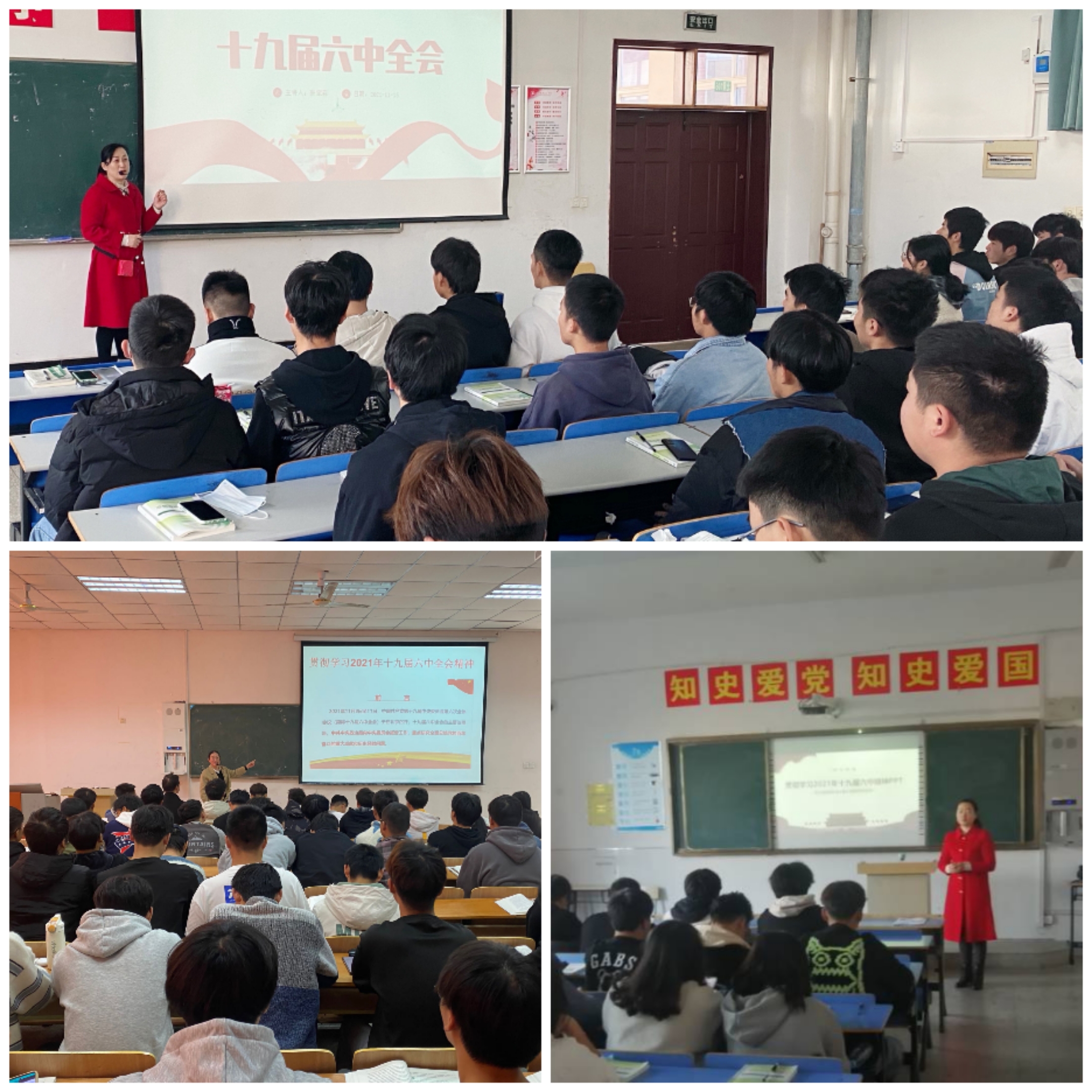 11月8日至11日,党的十九届六中全会在北京召开,这次全会是在我们党百年华诞的重要时刻,在“两个一百年”奋斗目标历史交汇关键节点上召开的一次重要会议,全面了总结党的百年奋斗重大成就和经验。马克思主义学院思政课教师及时收看并深入学习十九届六中全会精神,11月15日周一一开课,马院思政教师立刻启动将全会精神带进课堂,组织学生展开热烈的讨论,引导大学生们关心党的重要决议,激发对党的政治理论学习热情。