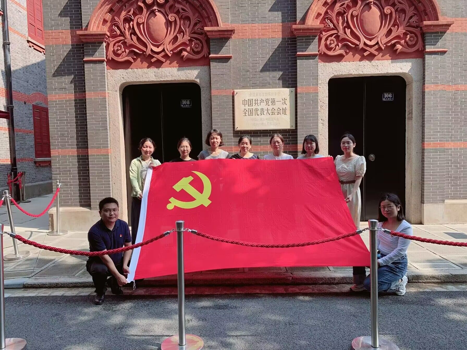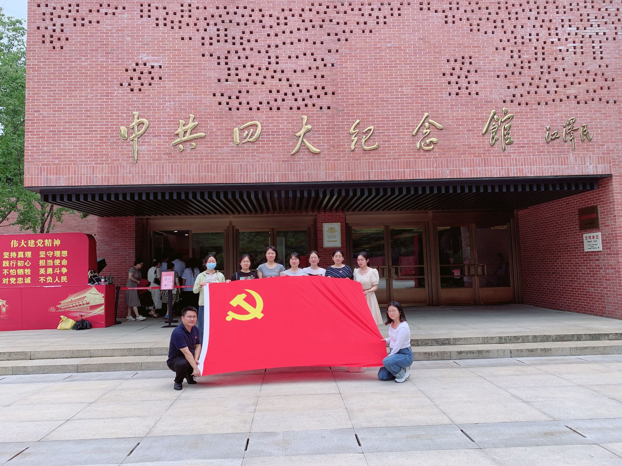 中共一大会址是我们党的诞生地,也是中国共产党人的精神家园。在这里,我们寻见初心,深刻感悟中国共产党人历久弥坚的初心和使命,从中汲取信仰的力量。中共一大纪念馆展厅以“初心使命”贯穿全篇,共分为序厅、“前仆后继、救亡图存”“民众觉醒、主义抉择”“早期组织、星火初燃”“开天辟地、日出东方”“砥砺前行、光辉历程”和尾厅7个板块,综合采用多种展示手段,全面系统地展示了中国共产党的诞生历程。党员同志们跟随讲解员认真聆听了内容讲解,观看了实景+裸眼3D展示的“开天辟地大事变”,回顾了中共一大的曲折过程,深刻了解了中国共产党从建立之初到发展成熟的革命历程,铭记党的奋斗历史,重温建党精神。支部党员同志在胡颖颖同志的带领下重温了入党誓词:“我志愿加入中国共产党,拥护党的纲领,遵守党的章程……”,在鲜红的党旗下,各位党员同志高举右手庄严宣誓,党员的责任、使命、荣耀在此刻从心底油然而生。