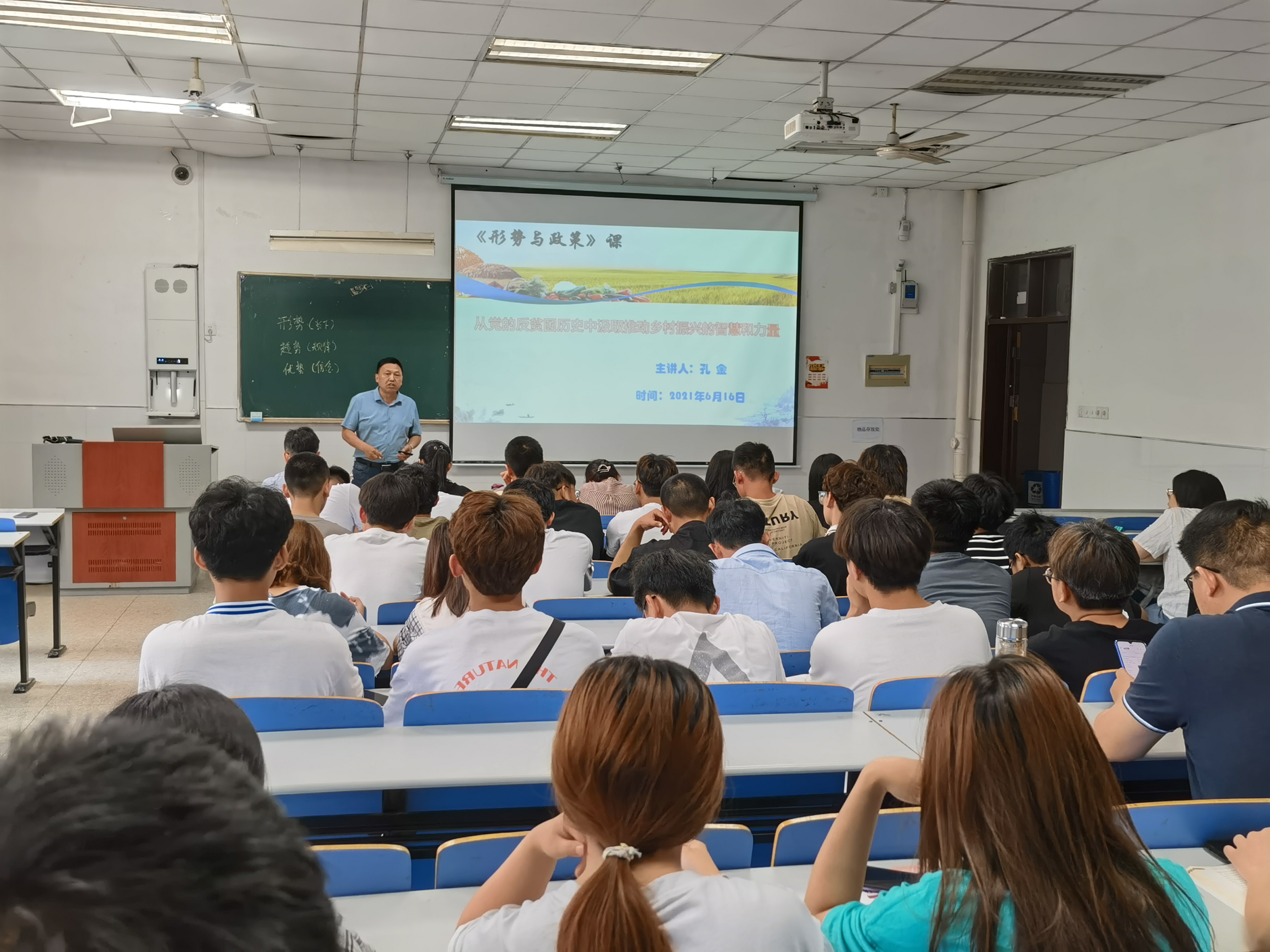 616日,马克思主义学院在至真楼1102教室在“形势与政策”课堂展示了一节党史思政示范课。本次示范课由马克思主义学院副院长孔金副教授主讲,题目是“从党的反贫困历史中汲取推动乡村振兴的智慧和力量”。教务处、质管中心派人指导,全体思政课教师观摩了示范课。