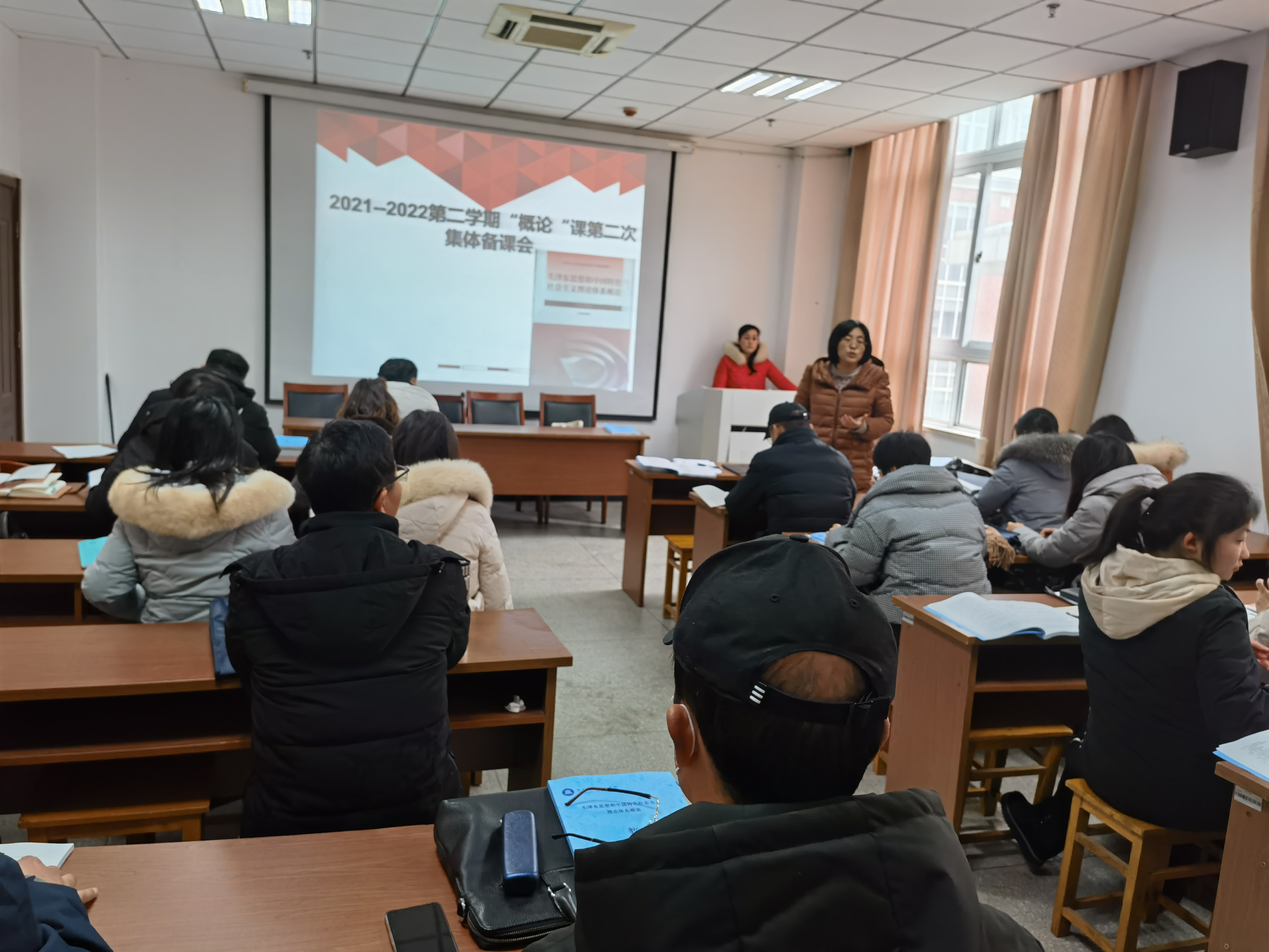为深入推进习近平新时代中国特色社会主义思想“三进”工作,把党史学习教育融入思政课,吃准吃透2021年新版“概论”课教材,进一步规范教学要求,推进教育教学改革,切实提升课程教学实效性,2月17日,马克思主义学院在综合楼318会议室召开新学期集体备课会。会议由“概论”课教研室主任张家莉主持,28位专兼职教师参加,这是“概论”课本学期的第二次集体备课会。