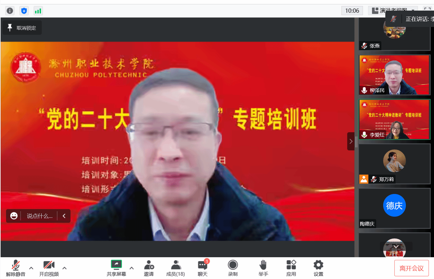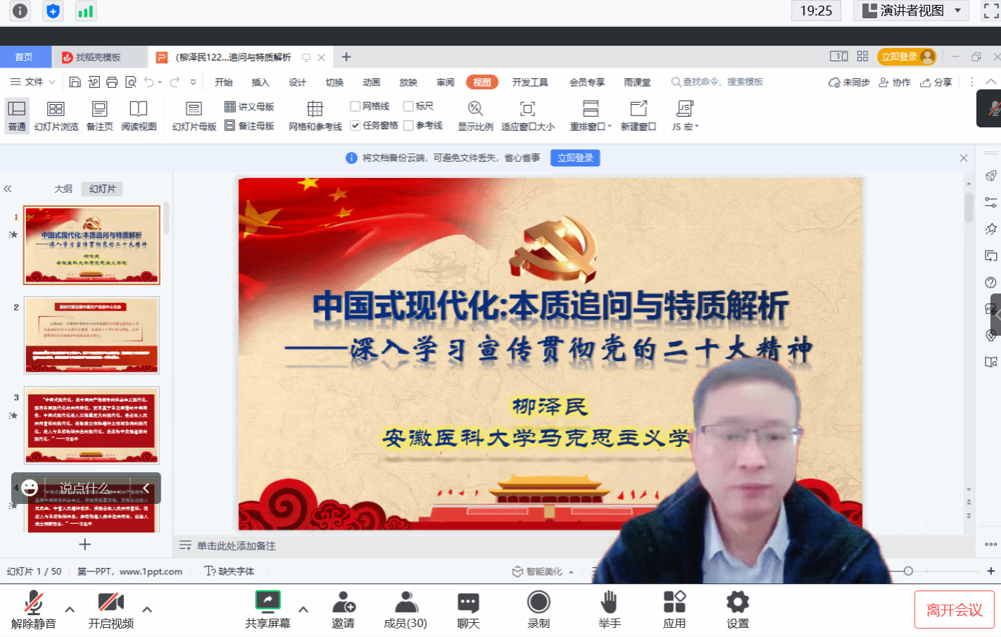 必赢76net线路官网习近平新时代中国特色社会主义思想和党的二十大精神进教材专题培训正在火热开展中,12月28日,安徽医科大学马克思主义学院院长、教授柳泽民受邀做第四场专题辅导《中国式现代化:本质追问与特质解析》,线上会议由马克思主义学院院长李爱红主持,全体专兼职思政教师参加。