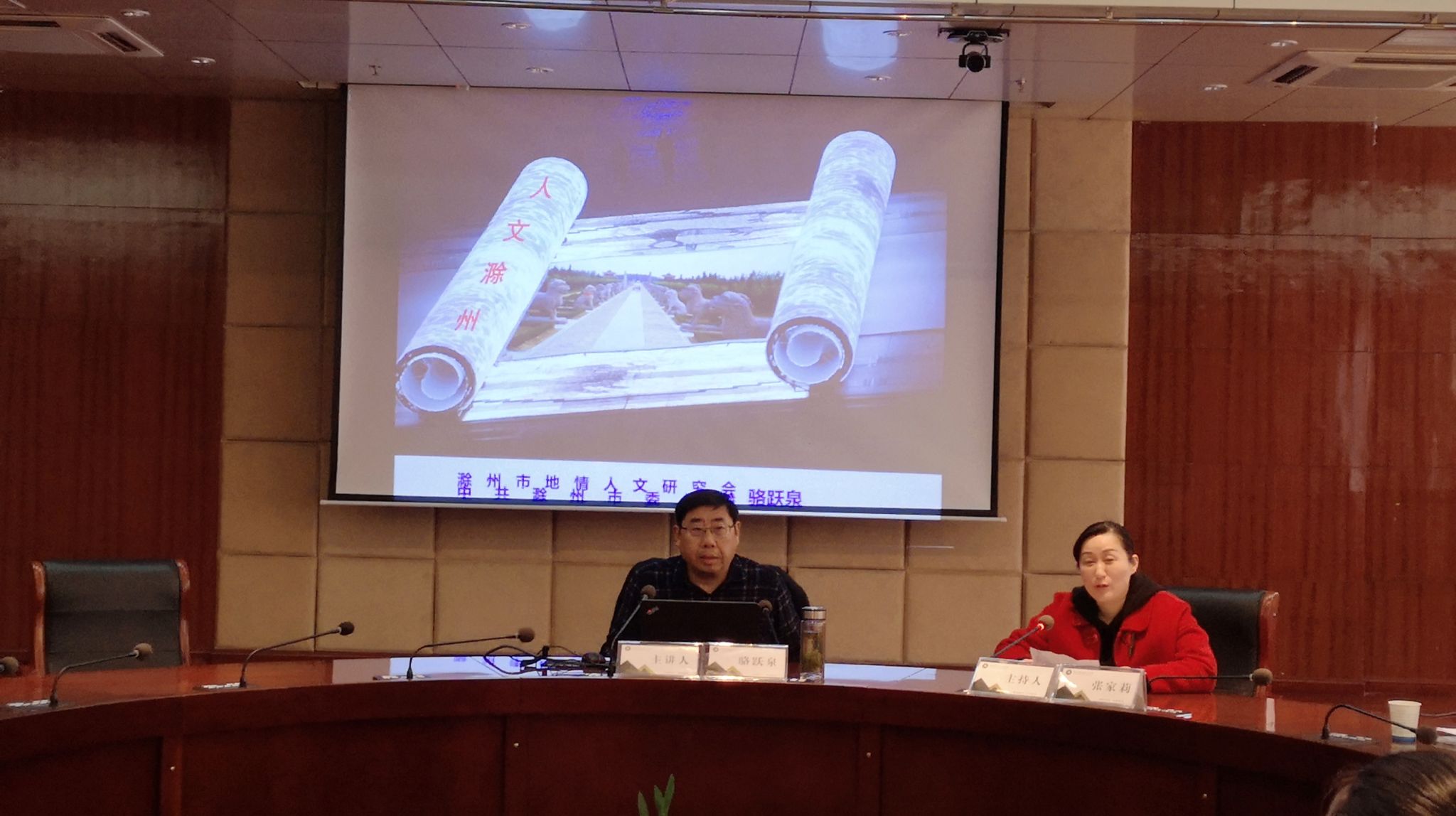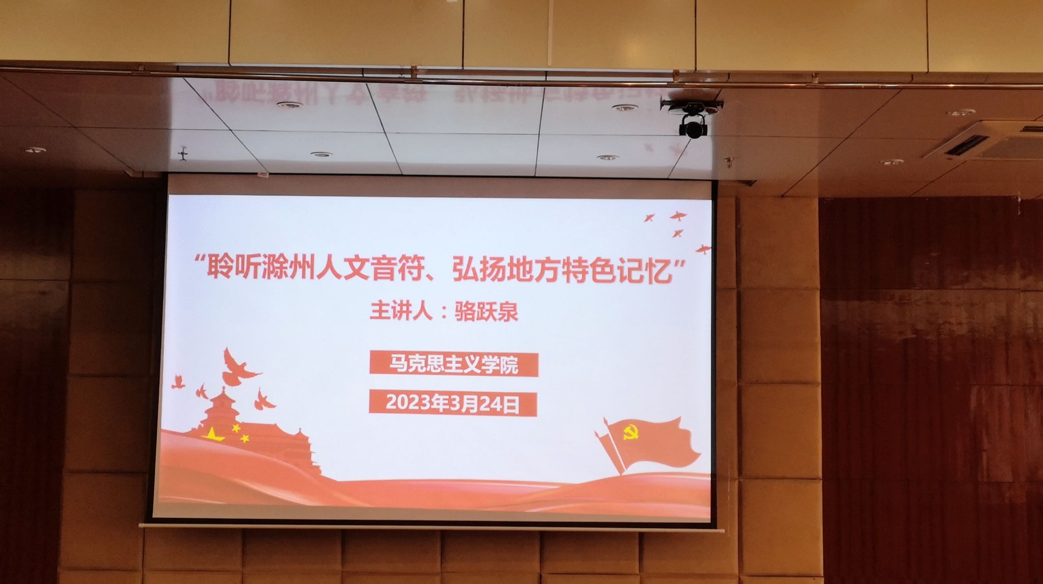 为深入了解滁州文化特色,传承弘扬优秀传统文化,更好的将滁州本土文化融入到思政教学中,3月24日,滁州市地情人文研究会副秘书长、滁州市委党校行政处长骆跃泉受邀来必赢官网进行“聆听滁州人文音符 弘扬地方特色记忆”专题讲座,讲座地点设在综合楼1101会议室,讲座由马克思主义学院副院长张家莉主持,全体专兼职思政教师参加。