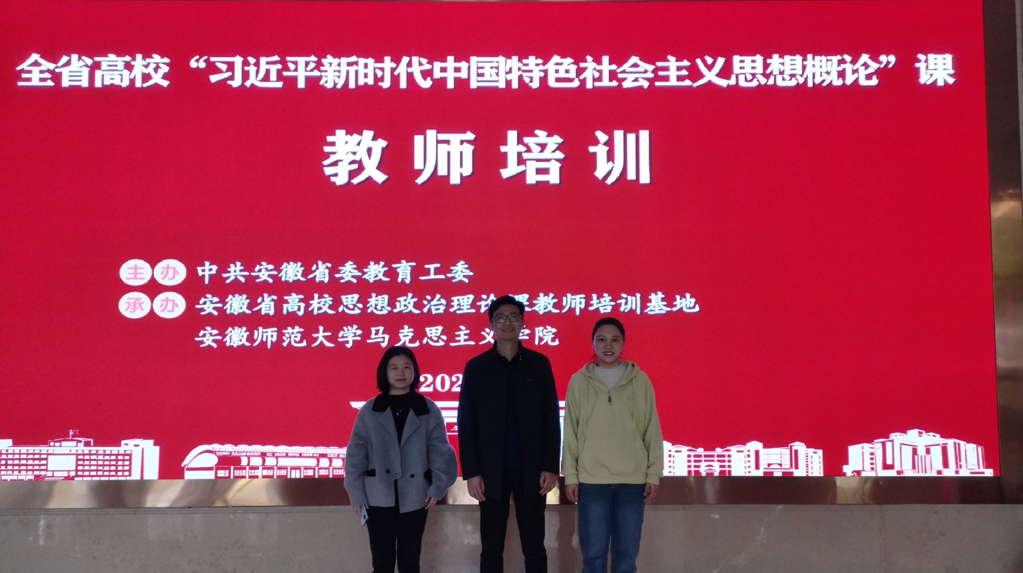 按照教育部上好讲好“习近平新时代中国特色社会主义思想概论”课工作要求,省委教育工委决定举办全省高校“习近平新时代中国特色社会主义思想概论”课教师培训班,2023年3月31日—4 月2日,我院安排吴成达、张燕、王小冉三位教师参加安徽省高校思想政治理论课教师培训基地(安徽师范大学)举行的专项培训。