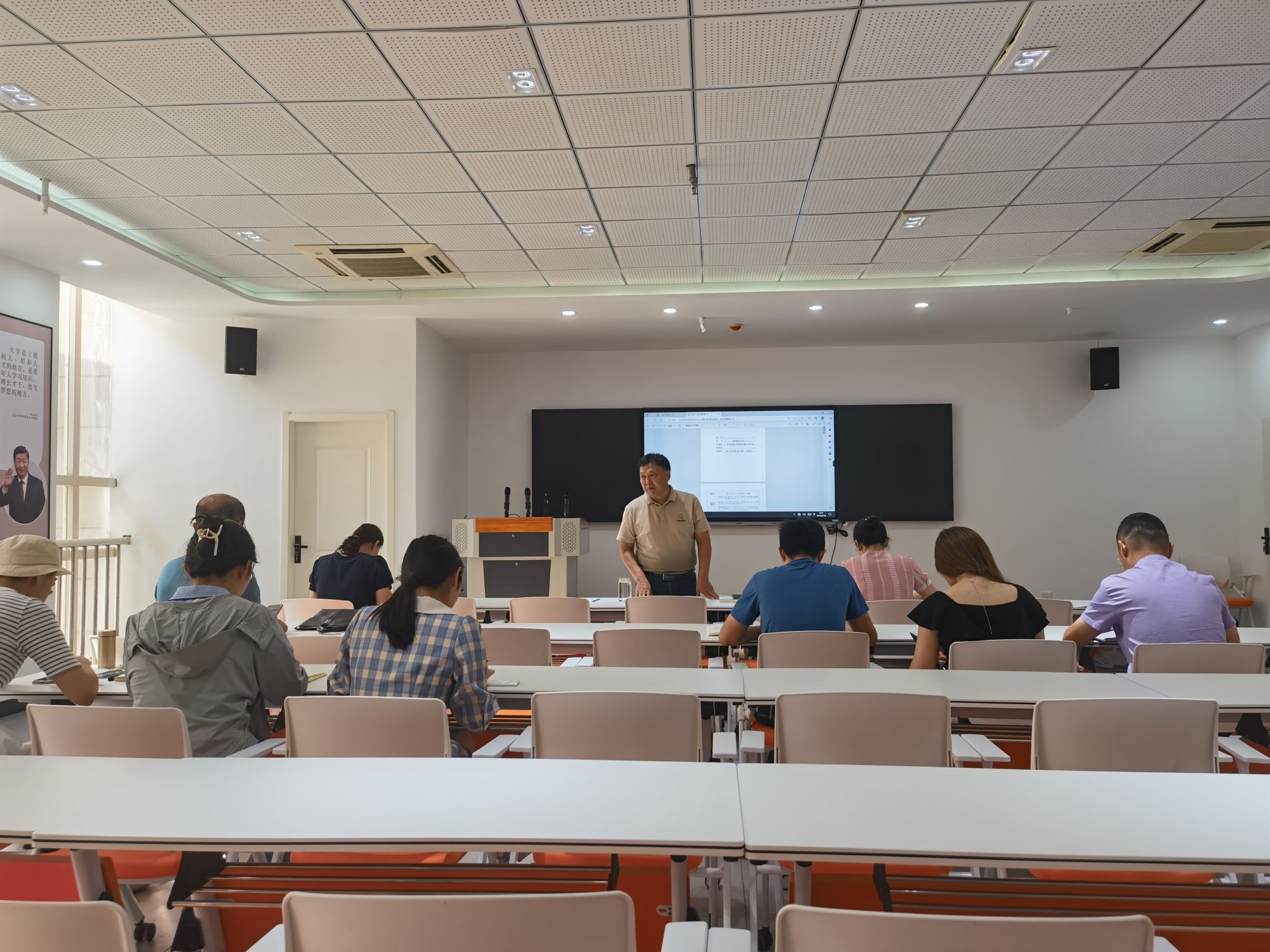 为贯彻落实习近平新时代中国特色社会主义思想和党的二十大精神进课堂、进教材、进学生头脑,围绕“三教改革”着力解决思政课程、思政教师教育教学能力“两个攻坚”的问题,继续提升高校思想政治理论课质量和水平,8月10日,马克思主义学院思想政治教育教研室在综合楼309会议室召开《思想道德与法治》课第一次集体备课活动,会议由思想政治教育教研室主任胡颖颖主持,全体相关思政理论课教师参会。
