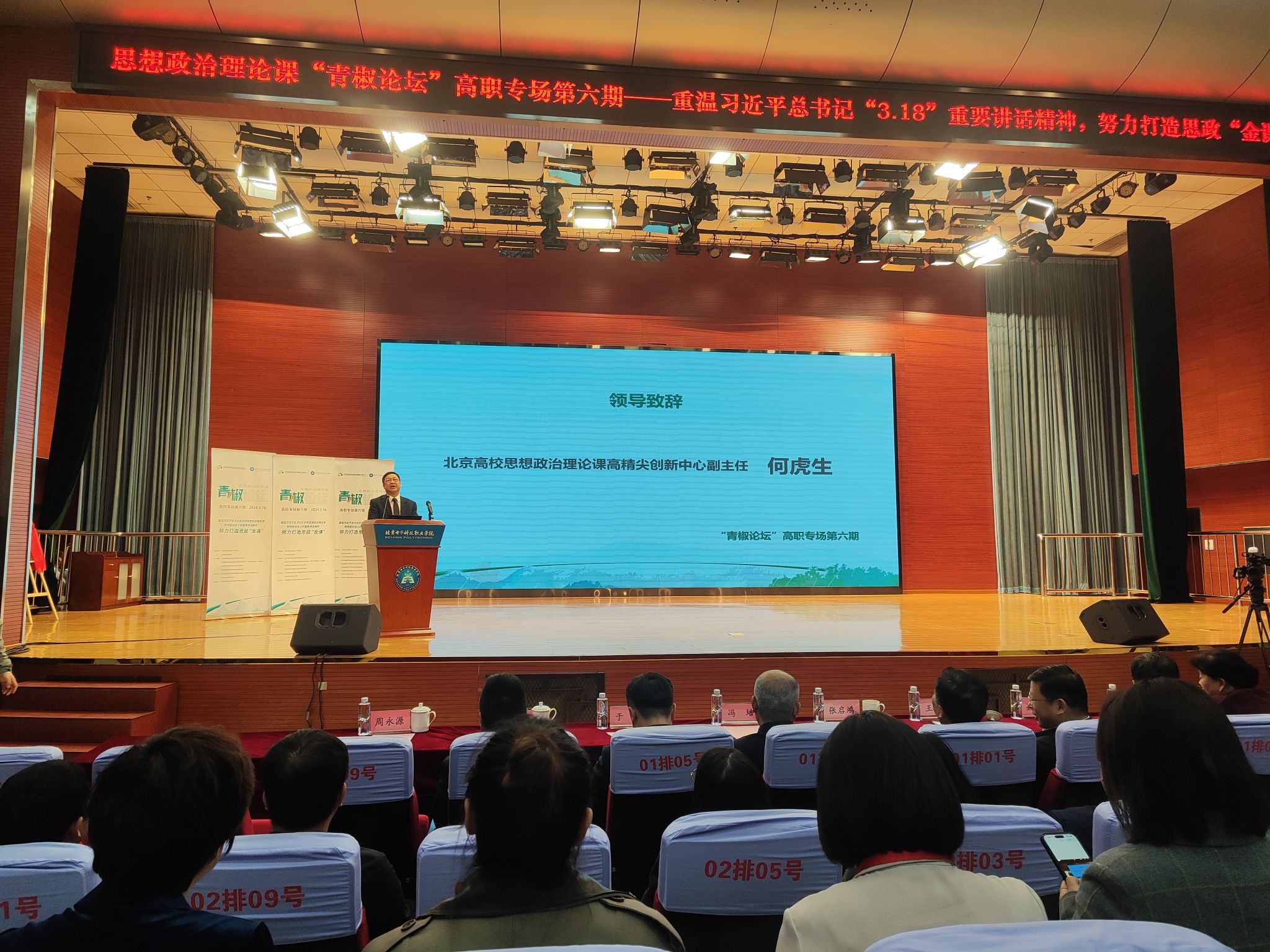“青椒论坛”系北京高校思想政治理论课高精尖创新中心面向思政课青年教师打造的品牌活动,旨在为思政课青年教师搭建学术交流平台,帮助其交流教学心得、研讨教学技能、提升教学能力。此次论坛的主题是“重温习近平总书记在学校思想政治理论课教师座谈会上的重要讲话精神,努力打造思政‘金课’”。