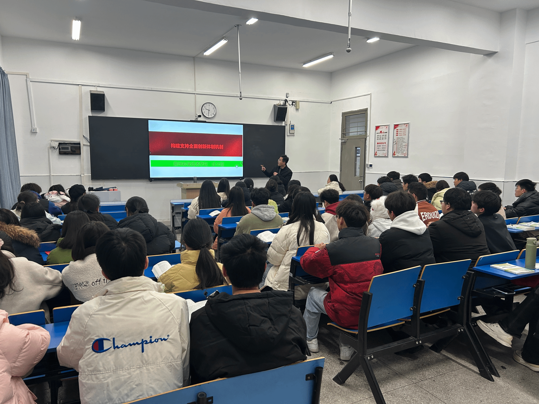 12月3日,马克思主义学院汪立超副教授在1325教室为2024级学生开展了“学习贯彻党的二十届三中全会精神:构建支持全面创新体制机制”学术讲座。此次讲座旨在深入解读党的二十届三中全会精神中关于创新体制机制的重要内容,激发学生们的创新思维和探索精神,吸引了众多学生积极参与。