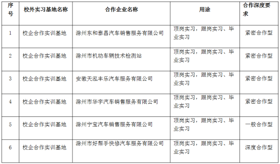 通过三年的专业建设,新能源汽车技术专业不断与校外单位紧密联系,到目前建立了多家校外实训基地。为学生提供阶段实习、定岗实习以及为毕业生提供相关就业岗位。