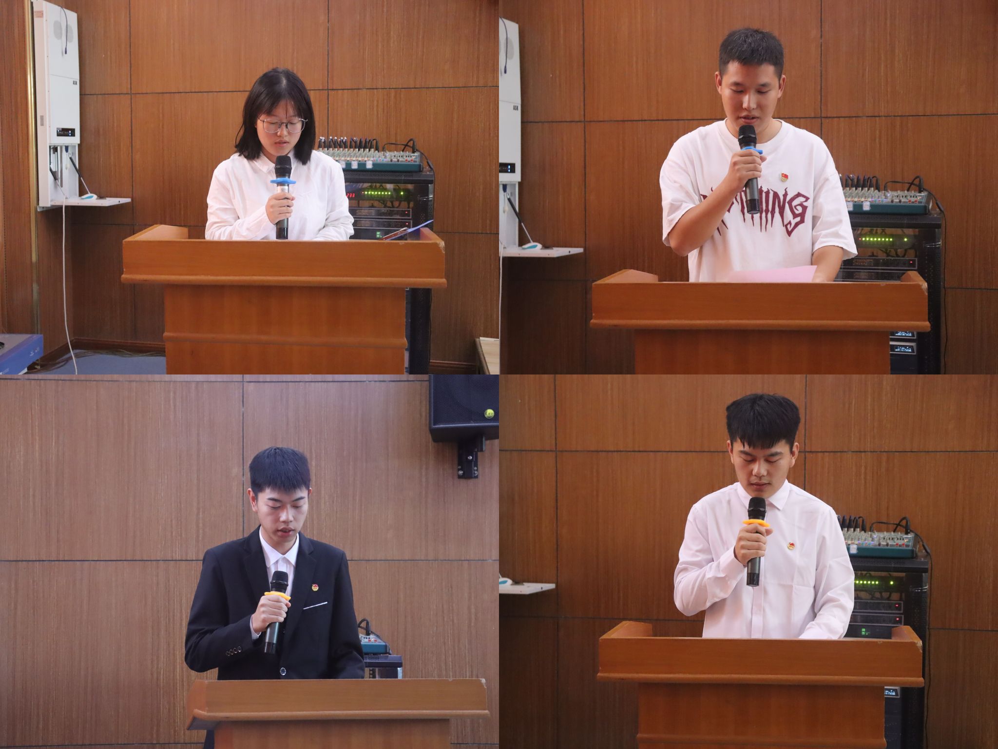 本次换届大会在庄严的国歌声中拉开帷幕。刘旭冉在开场致辞中对我院团学组织过去一年的工作成绩进行了全面总结,并对上届团学干的辛勤工作给予了高度肯定。上届团总支副书记王建建和学生会主席张紫欣分别进行述职报告,回顾了他们在职期间的工作亮点与成就。张记老师宣布新一届团总支拟任命名单,李瑞瑞老师宣布学生会的拟任命名单,并为他们隆重举行了聘任仪式。新一届团总支副书记韩宇乐和学生会主席汪宏业上台发言,分享他们未来的工作目标和规划,并表示将全力以赴为学院团学组织的工作与发展贡献力量。