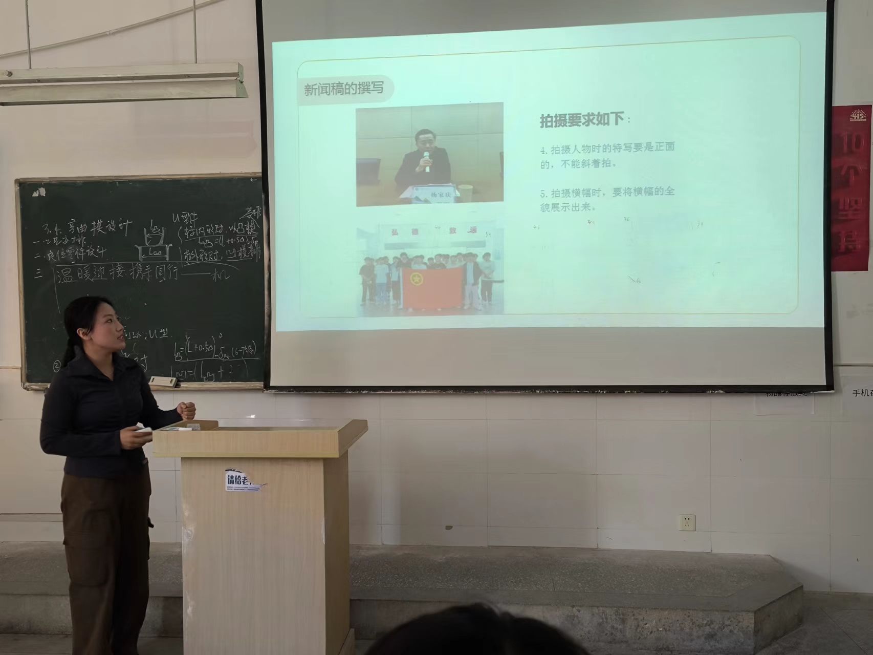 培训开始,于相丽详细讲解了新闻稿的基本结构,并强调了每个部分的写作要点;对拍摄内容、拍摄角度、画面构图等方面进行了详细的讲解和指导。从文案撰写的技巧到图片处理的方法,加强新生团学干对新媒体运营的能力。