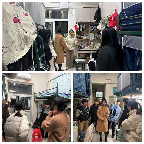 张功会等人与宿舍管理人员交流交谈,了解学院学生住宿情况,及时发现存在的问题和不足;走访了3301、5440、6206等十余个宿舍,查看宿舍卫生、用电等情况,叮嘱学生搞好环境卫生,共同营造干净整洁的生活环境;教育同学们共同抵制大功率电器,在宿舍安全问题上都要做个有心人,及时发现、及时消除,把安全放在第一位;勉励同学们团结互助,和谐相处。