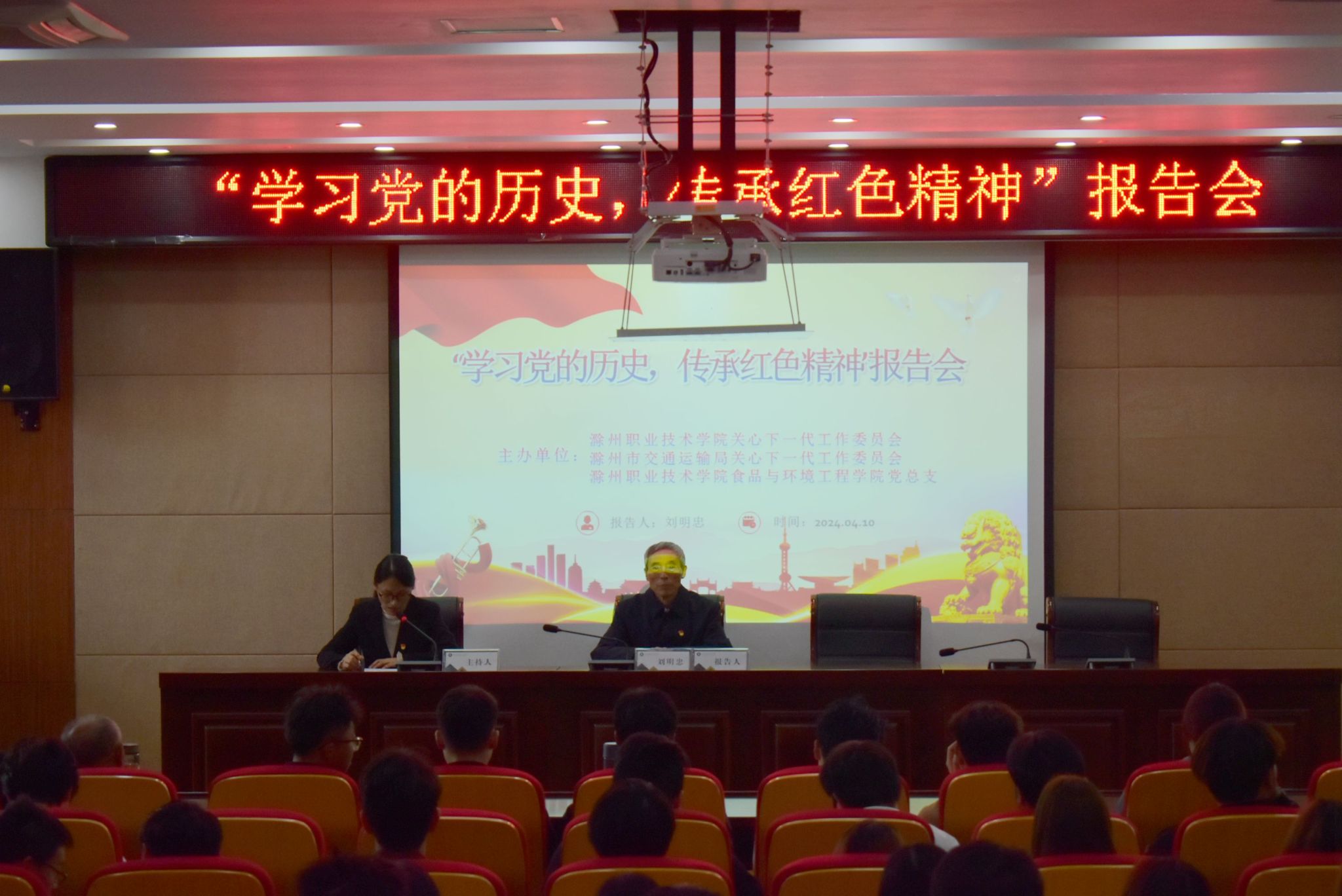 报告会由必赢76net线路官网关工委、滁州市交通运输局关工委、食品与环境工程学院党总支联合主办。滁州市交通运输局关工委常务副主任刘明忠以《心中有党》为题做报告。必赢76net线路官网食品与环境工程学院党总支书记张功会主持会议,食品与环境工程学院约300名学生现场聆听了报告。滁州市交通运输局科长房克楼、校关工委驻会同志和办公室等同志参加了报告会。