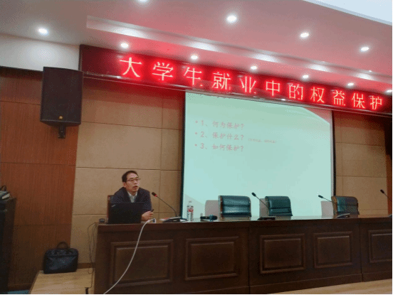 尚昌虎同志以其丰富的法律实务经验和深厚的法学理论功底,针对当前大学生在就业市场中可能面临的权益保护问题进行了深入剖析。他指出,大学毕业生在步入职场的过程中,常常因为法律意识淡薄、维权观念不强、合同意识不足及社会经验的缺乏,容易在就业过程中遭遇合法权益的侵犯。因此,他强调在高校就业教育中,对大学生法律意识的培养显得尤为重要。