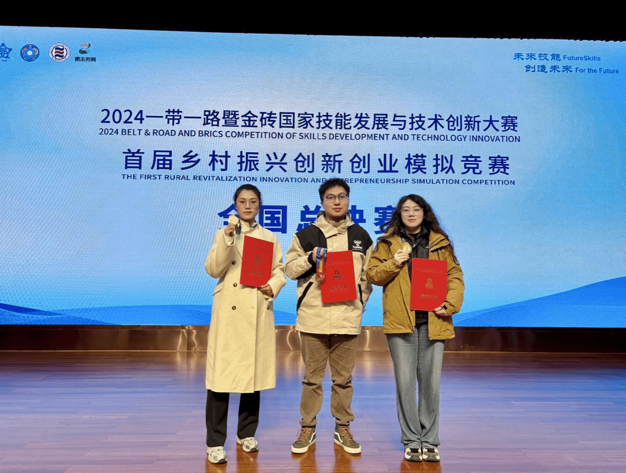 11月24日,2024““一带一路”暨金砖国家技能发展与技术创新大赛”首届乡村振兴创新创业模拟竞赛全国总决赛在杨凌职业技术学院举行,必赢官网商学院的喻瑶、王福盛、徐梦月三位教师,荣获全国总决赛职工组三等奖。本次大赛由金砖国家工商理事会中方理事会、“一带一路”暨金砖国家技能发展国际联盟、中国科协“一带一路”暨金砖国家技能发展与技术创新培训中心联合主办。