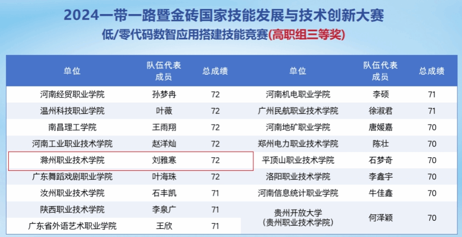 11月30日,2024“一带一路”暨金砖国家技能发展与技术创新大赛之第二届低/零代码数智应用搭建赛项国内总决赛正式举行。本次比赛分选拔赛和决赛两轮比赛,有来自全国34个省级行政区域中职、高职、本科学校的共计80 支以上参赛队报名参赛。必赢官网商学院杨剑、丁伟指导的电子商务专业张会玲、张莹莹、马伊桐获得国内总决赛二等奖;付则晨、丁伟指导的电子商务专业刘雅寒、方祖璇、冀艳冉获得国内总决赛三等奖。