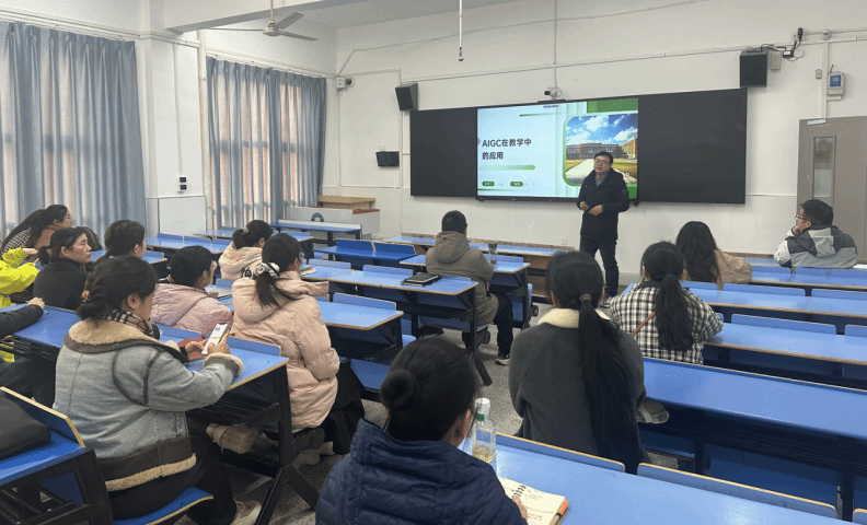 2024年12月11日下午,商学院在1209教室举办了一场人工智能生成内容(AIGC)在教学领域应用的专题讲座。商学院院长程震主讲,商学院系主任、专业负责人和任课教师参加讲座。
