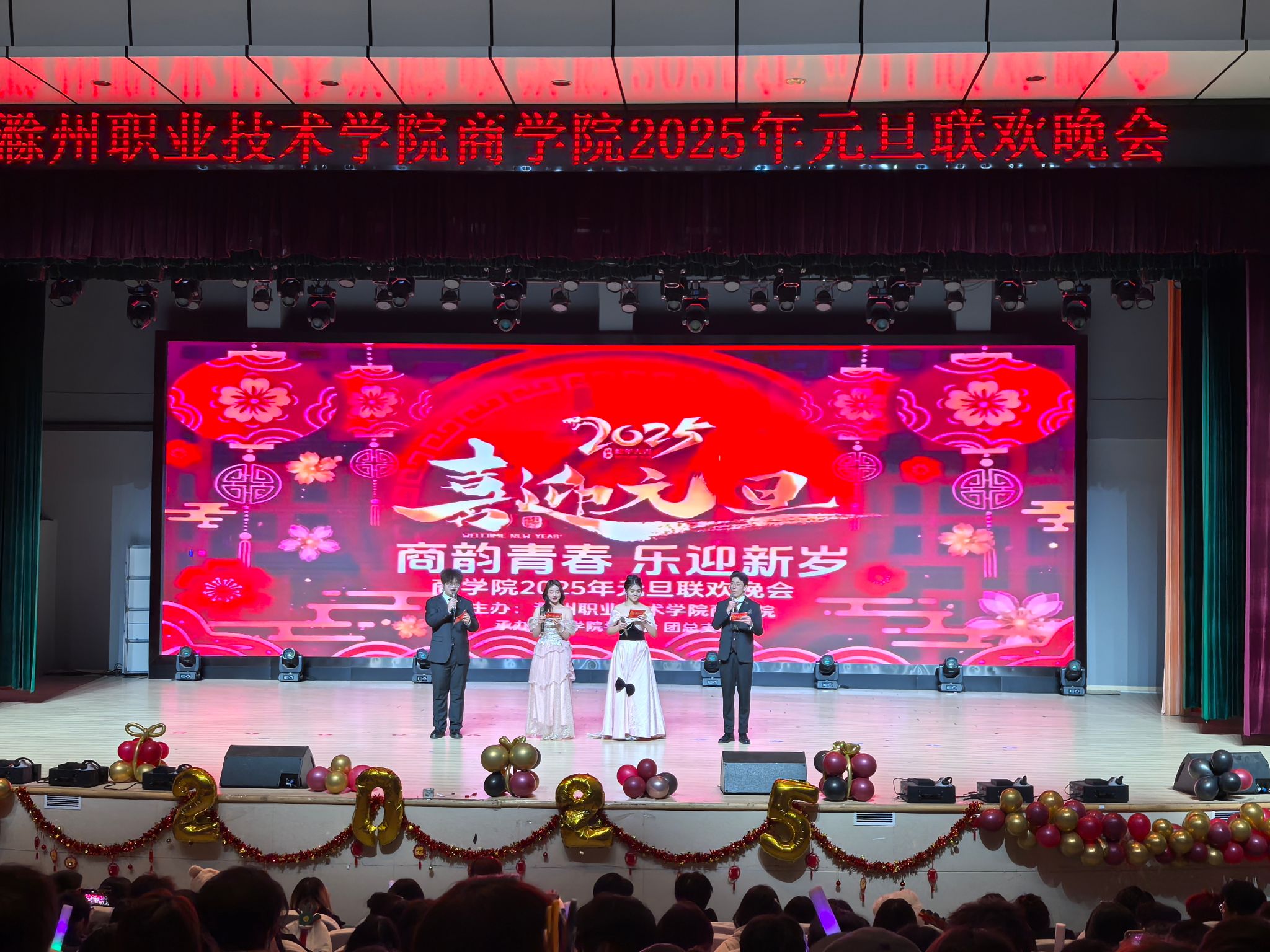2024 年 12 月 24日晚,商学院“商韵青春 乐迎新岁”2025年元旦晚会在大礼堂隆重举行。校党委委员、商学院党总支书记李超、商学院党总支副书记李晓辕以及全体师生齐聚一堂,共同庆祝这美好时刻。