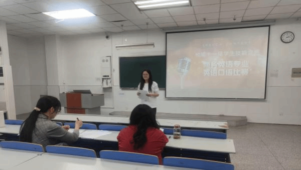 为提升学生商务英语应用能力,加强专业技能培养,2025年4月23日下午第十一届学生技能竞赛商务英语口语大赛(专业组)在致真楼1101和1102如期举行。商务英语专业学生积极报名参赛,商务英语教研室全体教师参与组织并担任评委。