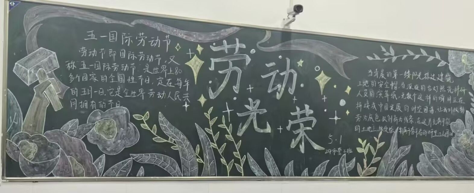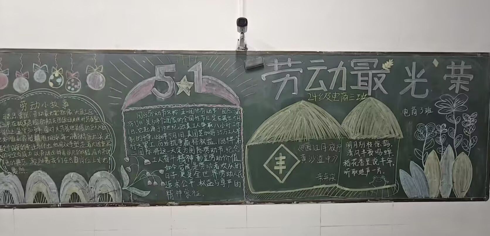 2025年5月5日,为迎接“五一”国际劳动节的到来,丰富校园文化内涵,商学院组织开展了以“五一”为主题的黑板报评比活动,各班级踊跃参与,营造出崇尚劳动、尊重劳动者的浓厚氛围。