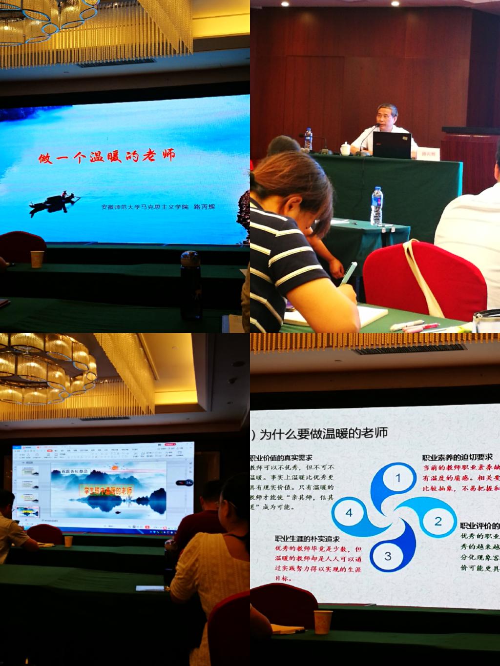 8月4日上午,安徽芜湖金鹰尚美酒店二楼锦绣厅时时想起热烈的掌声。安徽师范大学马克思主义学院路丙辉教授作了一场题为《做一个温暖的好老师》的专题讲座,“双师”国培班物流管理专业学员认真聆听了这场精彩报告。