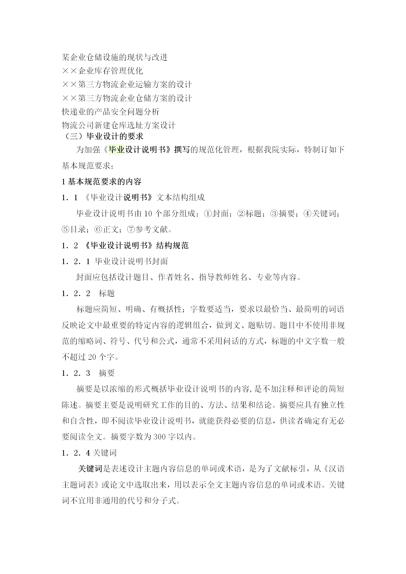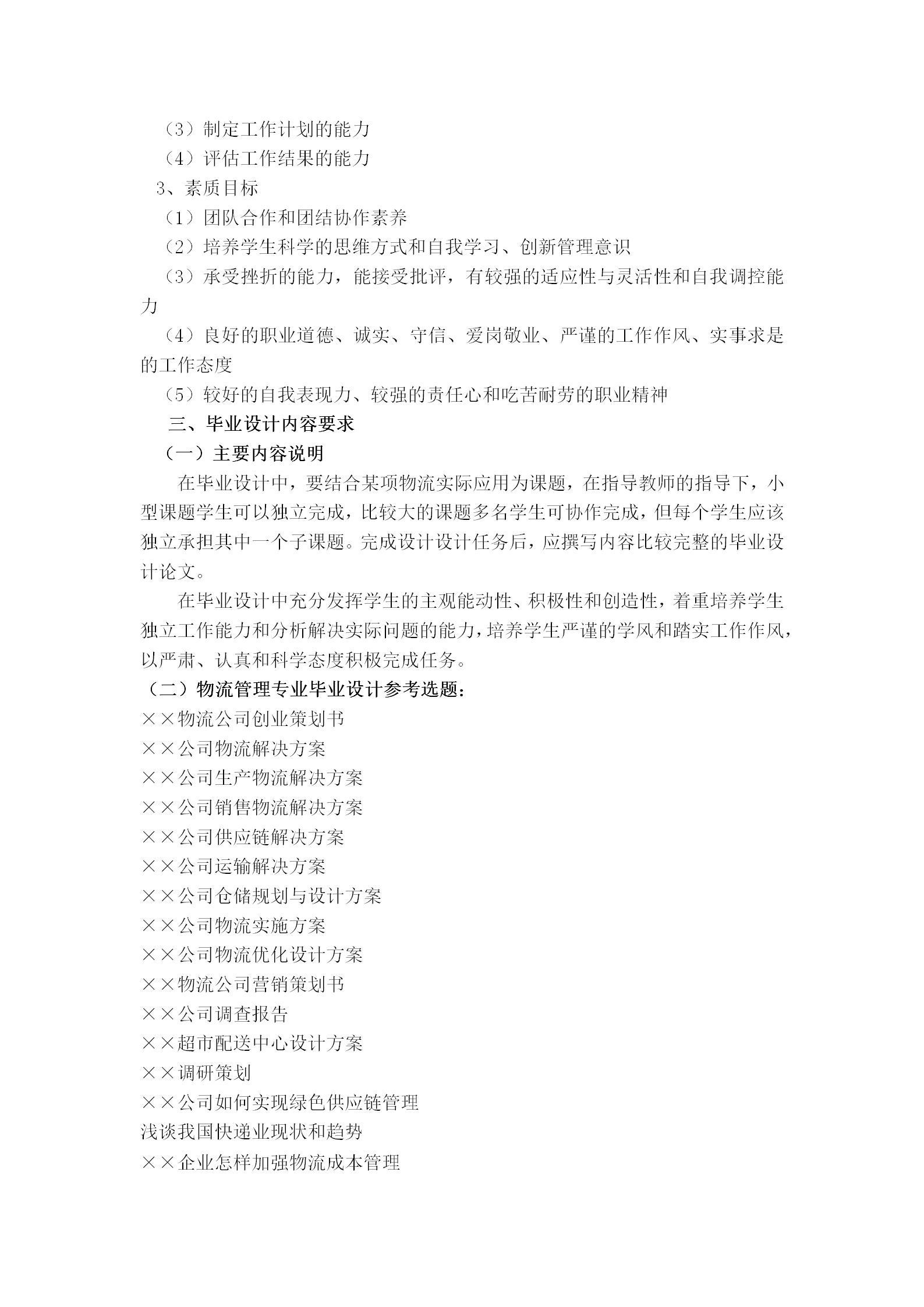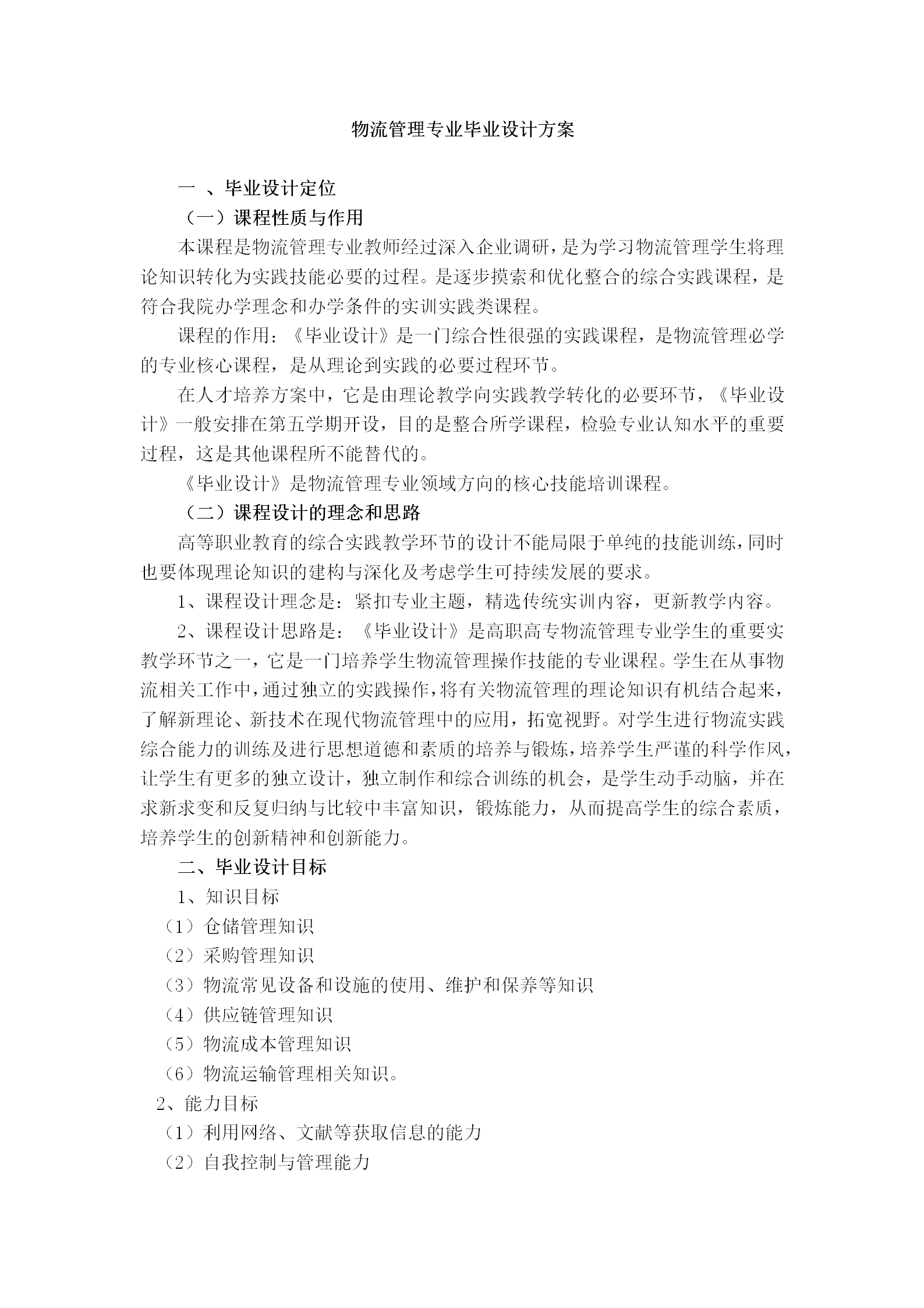 现代物流管理专业毕业设计方案