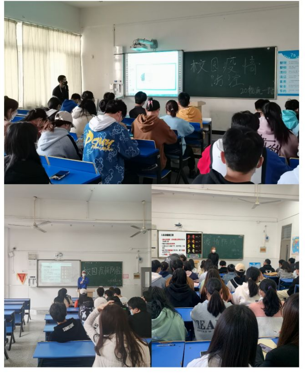 做好校园疫情防控工作不仅仅是个人的私事,而是全体师生共同的责任,我们每个人都应该依照疫情防控工作的规范严格要求自我,维护自身健康安全。讲座提出师生在校园内的公共场合要主动佩戴口罩,勤洗手,不接触外来人员,配合好学校防控工作的开展。呼吁同学们不能放松警惕,尽量不点外卖,不买快递,未经批准不擅自离校,积极配合学校防疫工作,保持社交距离,如有身体不适及时上报。