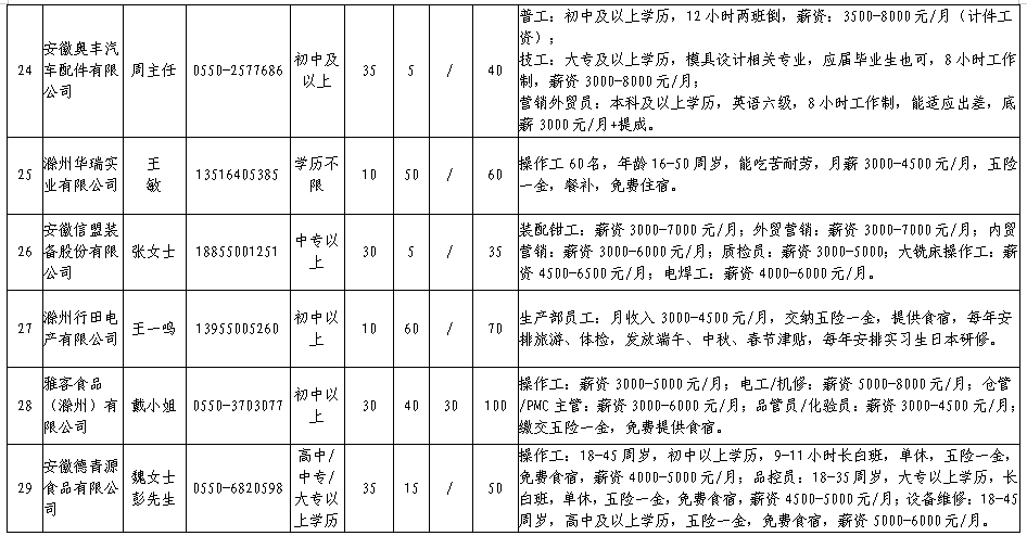 中新苏滁高新区 2020年一季度百家企业五千岗位招聘需求表