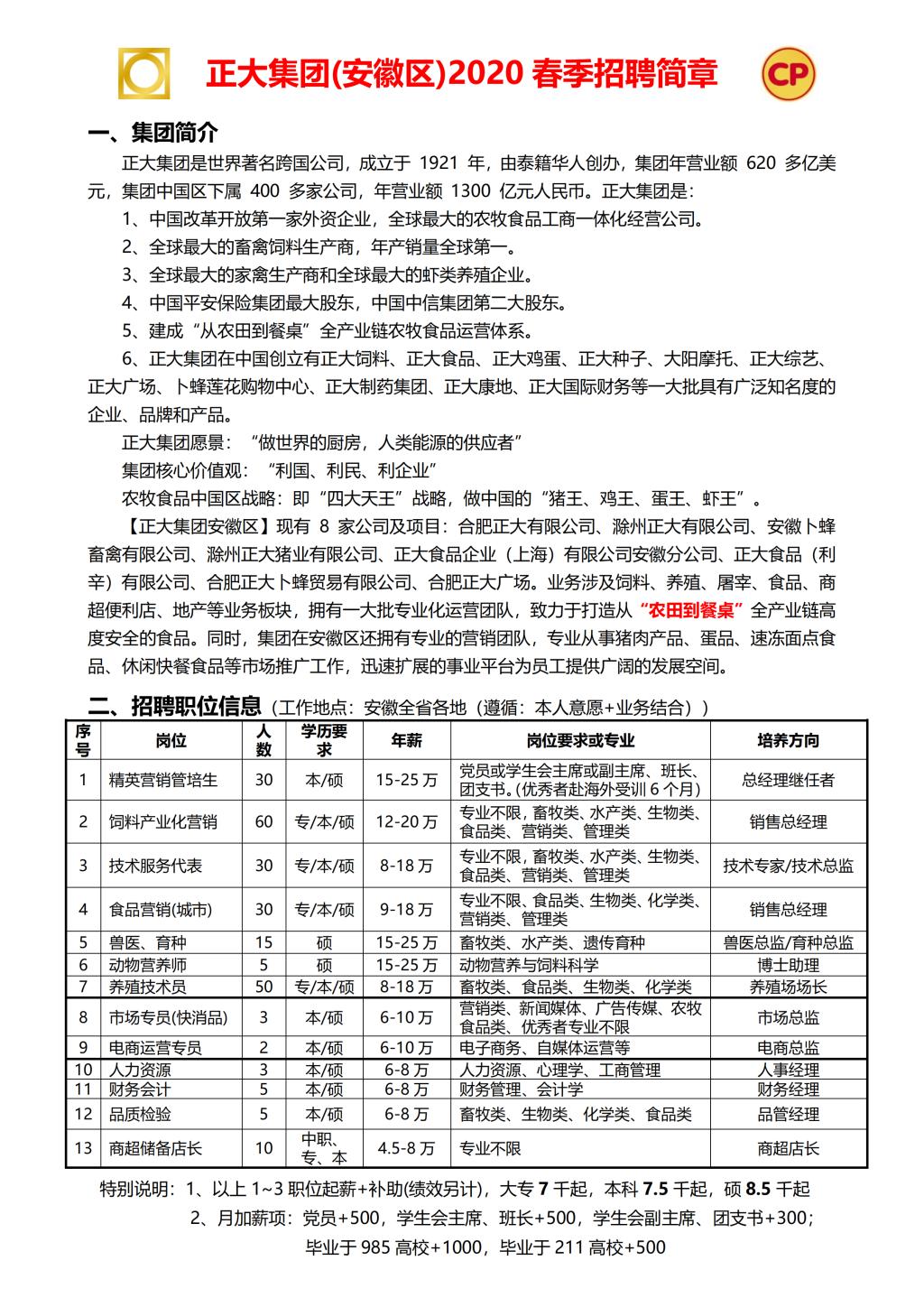 2020年春季招聘简章