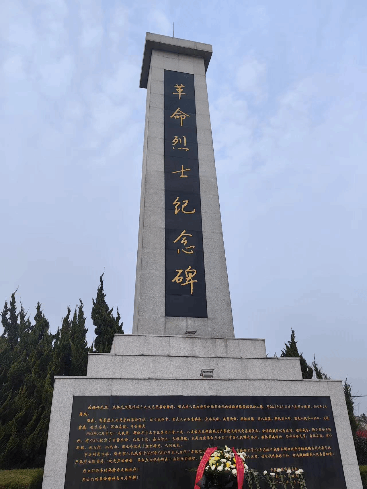 烈士陵园内,镌刻着“革命烈士永垂不朽”的纪念碑巍然屹立,在阳光的照耀下熠熠生辉。全体党员同志整齐列队举行祭扫仪式。在庄严肃穆的气氛中,满怀深情地向烈士纪念碑敬献花篮;在纪念碑前,向革命烈士鞠躬行礼,深切默哀缅怀革命先烈的丰功伟绩和崇高精神,向革命先烈寄托哀思。