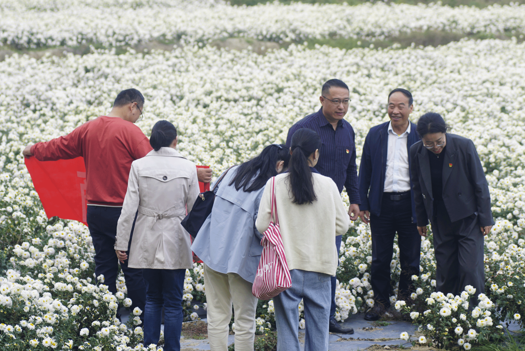 为进一步推进支部党建工作的创新发展,持续加强党支部“启智润心”品牌建设,提高党员将教育教学融入服务乡村振兴实践的能力,更好地服务地方社会经济发展,11月15号下午营销外贸系党支部全体党员赴滁州金玉滁菊生态园,体验滁菊种植、采摘和加工过程,深入了解滁州市非物质文化遗产“菊茶”的制作工艺。