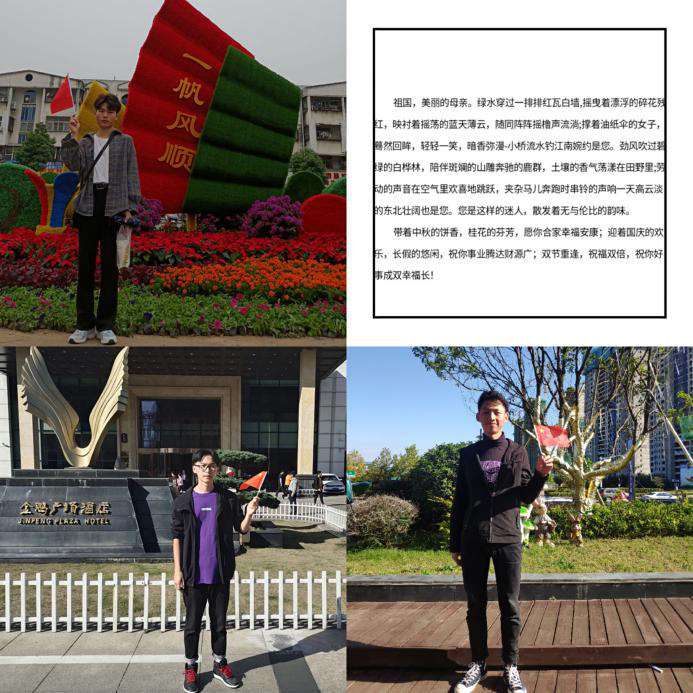 本次活动,充分展示出我院学子对佳节到来的喜悦,丰富了同学们的假期生活,既加强了同学们的爱国主义教育,又增强了同学们的爱国热情,营造出了热烈喜庆的节日气氛。