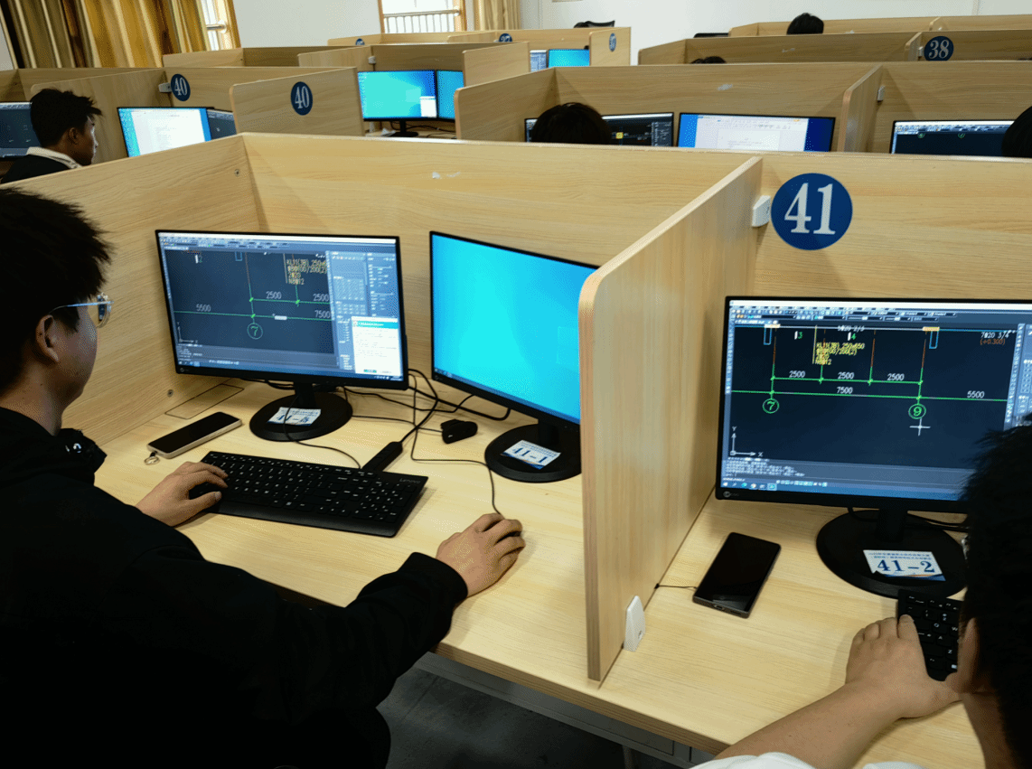 本次大赛由识图和绘图两部分组成。识图部分使用中望建筑工程识图能力评价实训软件机上作答,绘图应用CAD绘制建筑结构构件构造节点图。在紧张激烈的比赛中,同学们上机答题时沉着冷静,积极应战,运用CAD绘制结构施工图时一丝不苟,精益求精。经过评委评审,最终产生一等奖一组,二等奖两组,三等奖四组。