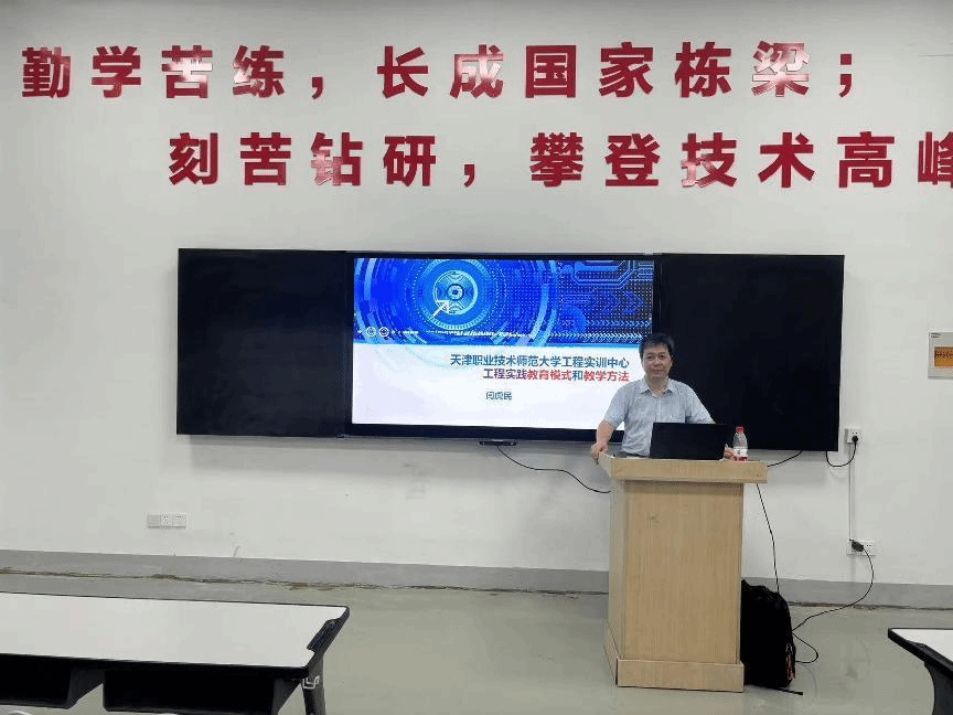 8月17日,此次培训特别邀请了世赛工业控制项目中国技术指导专家组组长、天津职业技术师范大学工程实训中心电气技术首席专家闫虎民莅临指导,闫虎民以其丰富的行业经验和深厚的学术造诣,深入浅出地讲解了智能制造技术的最新进展、未来趋势以及在实际生产中的应用案例。