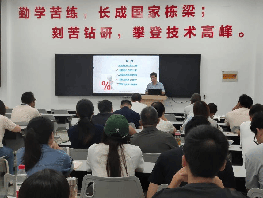 闫虎民大师以其深厚的学术造诣和丰富的实践经验,在讲座中深入浅出地阐述了工程实践教育的核心理念、教学模式以及教学方法。他强调,随着科技的飞速发展和产业的不断升级,工程实践教育必须紧跟时代步伐,不断创新教育模式,优化教学方法,要秉承重技强能,致学致用,特色求生存,服务求发展的理念,来培养更多符合社会需求的高素质、高技能人才。他鼓励参训教师们要敢于尝试新的教学方法和手段,注重培养学生的实践能力和创新思维,让学生在实践中学习、在学习中实践,不断提高自身的综合素质和竞争力。