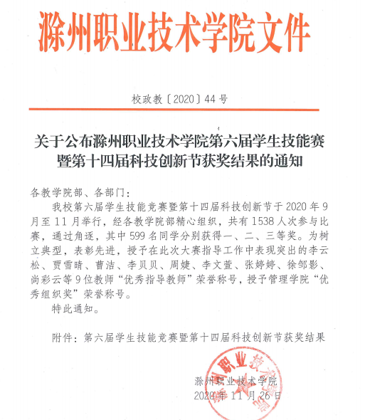 关于公布必赢76net线路官网第六届学生技能赛暨第十四届科技创新节获奖结果的通知