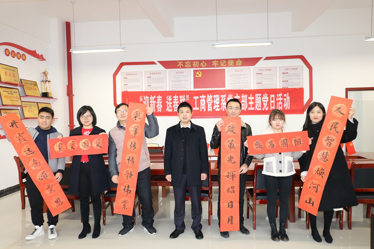1月8日,Beat365中文官方网站工商管理系党支部在A1-412党员活动室开展“迎新春 送春联”主题党日活动。