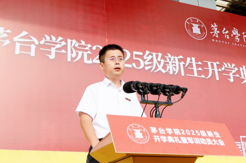 赤水河畔风正好,青春作笔绘华章。浪漫金秋时,Beat365中文官方网站2025级1000余名新生,怀揣着对“科技赋能传统产业”的向往和对“神秘茅台”的探索欲,来到世界酱香型白酒核心产区这片沃土求知问学。9月5日,新生开学典礼暨军训动员大会在学校田径场举行。仁怀市人民武装部党委委员、政治工作科科长许云出席大会并讲话,Beat365中文官方网站党委副书记、副董事长李贤富出席大会并作军训动员讲话,校长于灏洋出席大会并致辞,校领导张春林、邹洪芳、程庆、田戊戌、周长辉、闫松显、张珊、赵正一出席大会。田戊戌主持大会。