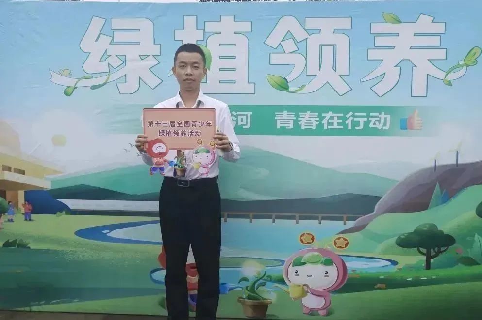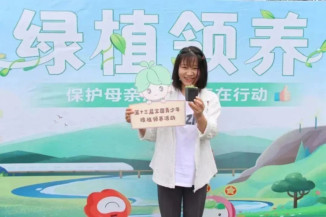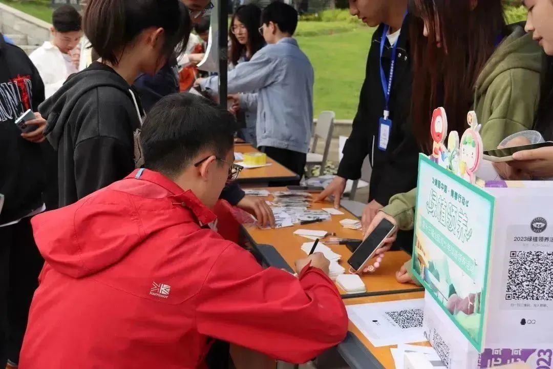 获得奖品后,同学们在卡片上留下属于自己的绿色宣言,与活动展板合影留念,活动现场充满欢声笑。